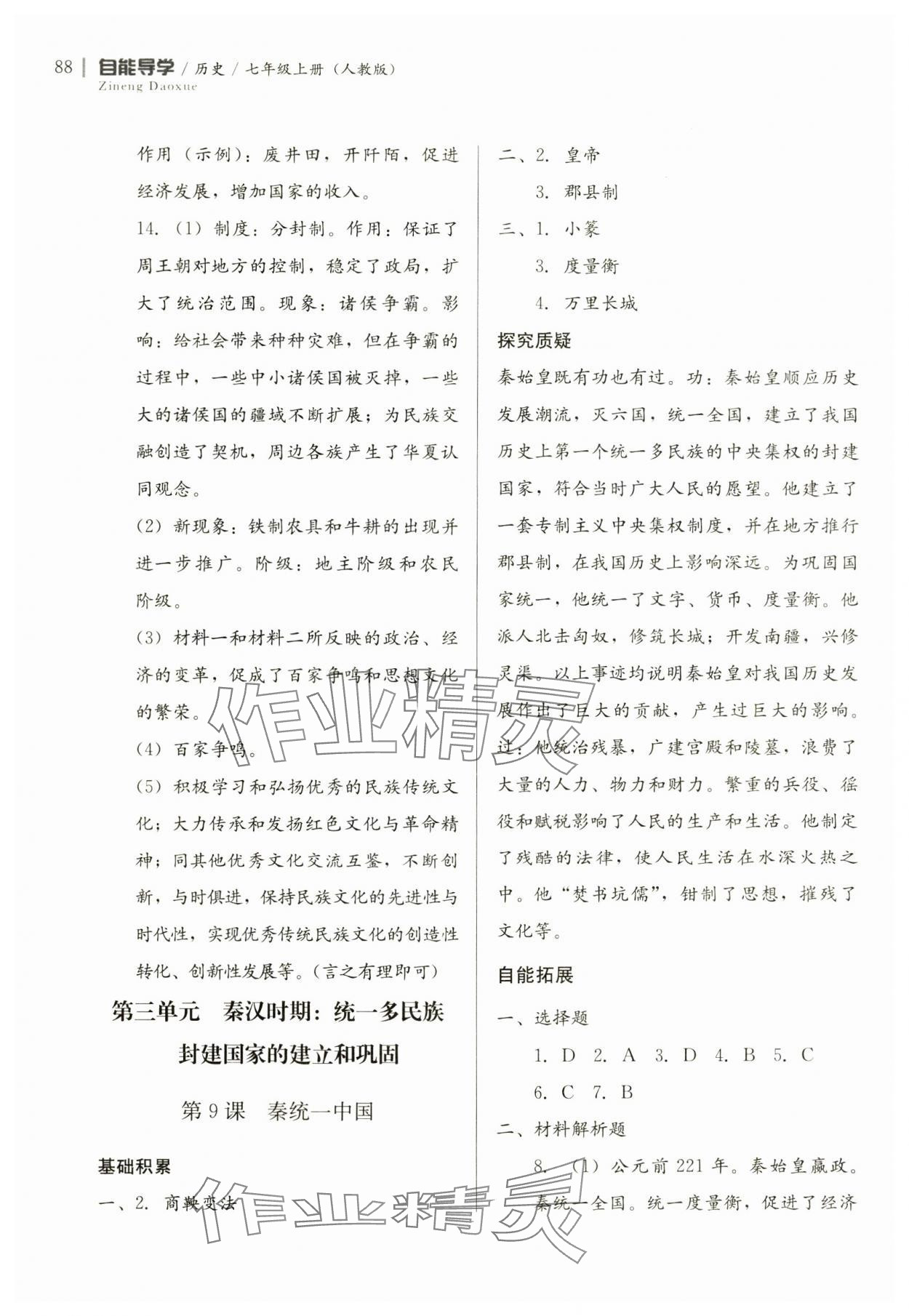 注:目前有些书本章节名称可能整理的还不是很完善,但都是按照顺序排列的,请同学们按照顺序仔细查找。练习册 2024年自能导学七年级历史上册人教版 答案主要是用来给同学们做完题方便对答案用的,请勿直接抄袭。
