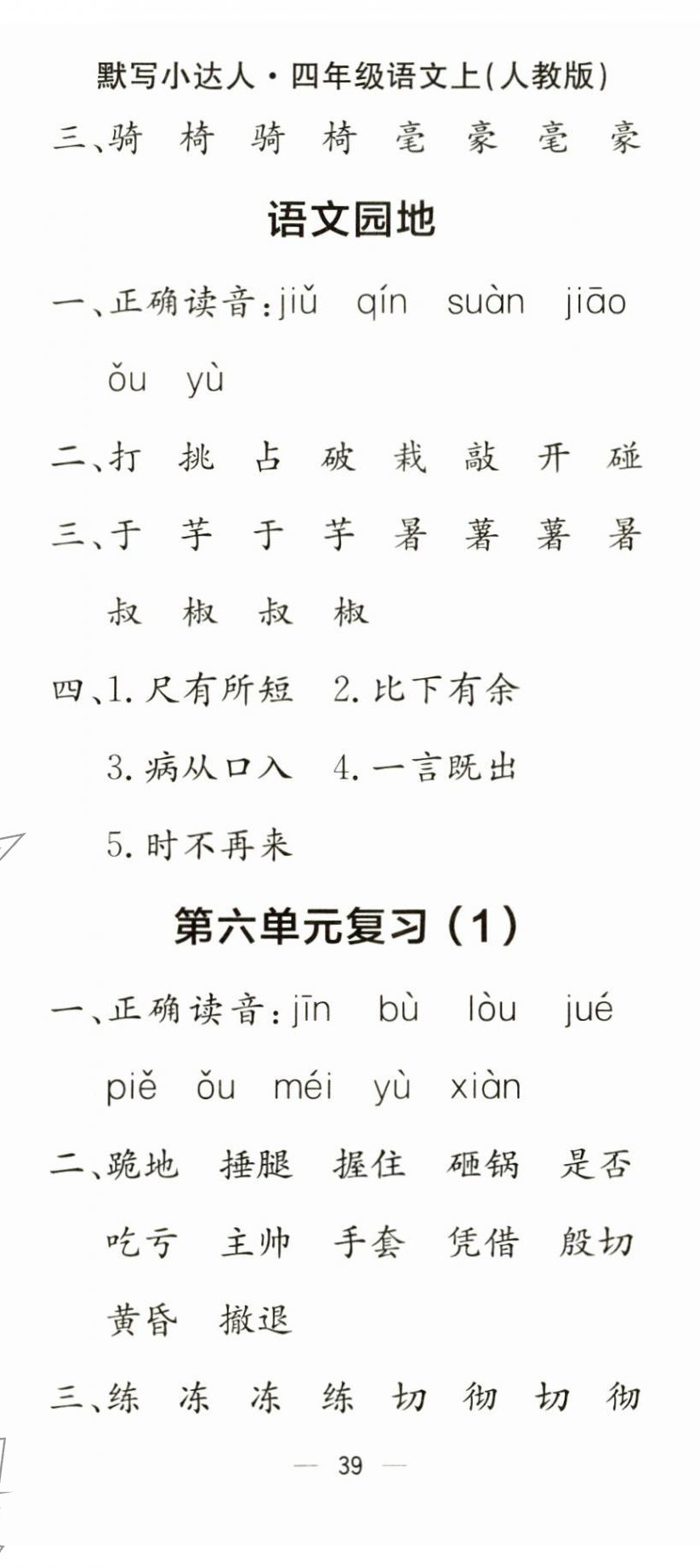 注:目前有些书本章节名称可能整理的还不是很完善,但都是按照顺序排列的,请同学们按照顺序仔细查找。练习册 2024年默写小达人四年级语文上册人教版 答案主要是用来给同学们做完题方便对答案用的,请勿直接抄袭。