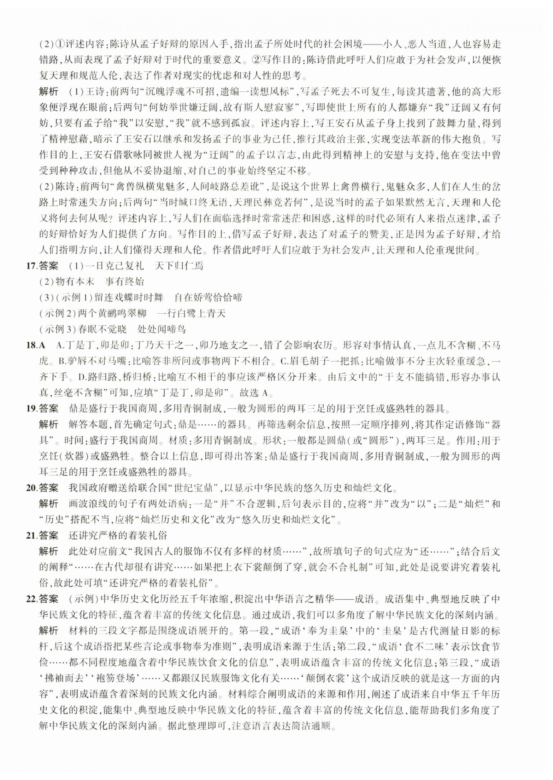 注:目前有些书本章节名称可能整理的还不是很完善,但都是按照顺序排列的,请同学们按照顺序仔细查找。练习册 2024年5年高考3年模拟高中语文选择性必修上册人教版 答案主要是用来给同学们做完题方便对答案用的,请勿直接抄袭。