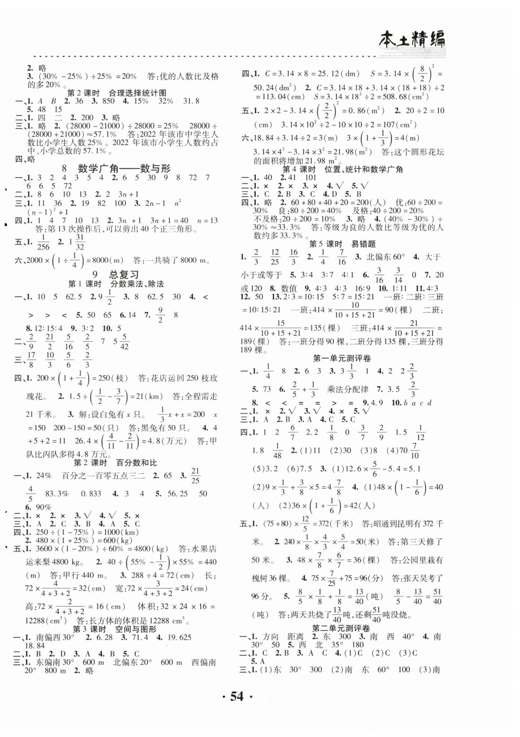 注:目前有些书本章节名称可能整理的还不是很完善,但都是按照顺序排列的,请同学们按照顺序仔细查找。练习册 2024年本土精编六年级数学上册人教版 答案主要是用来给同学们做完题方便对答案用的,请勿直接抄袭。