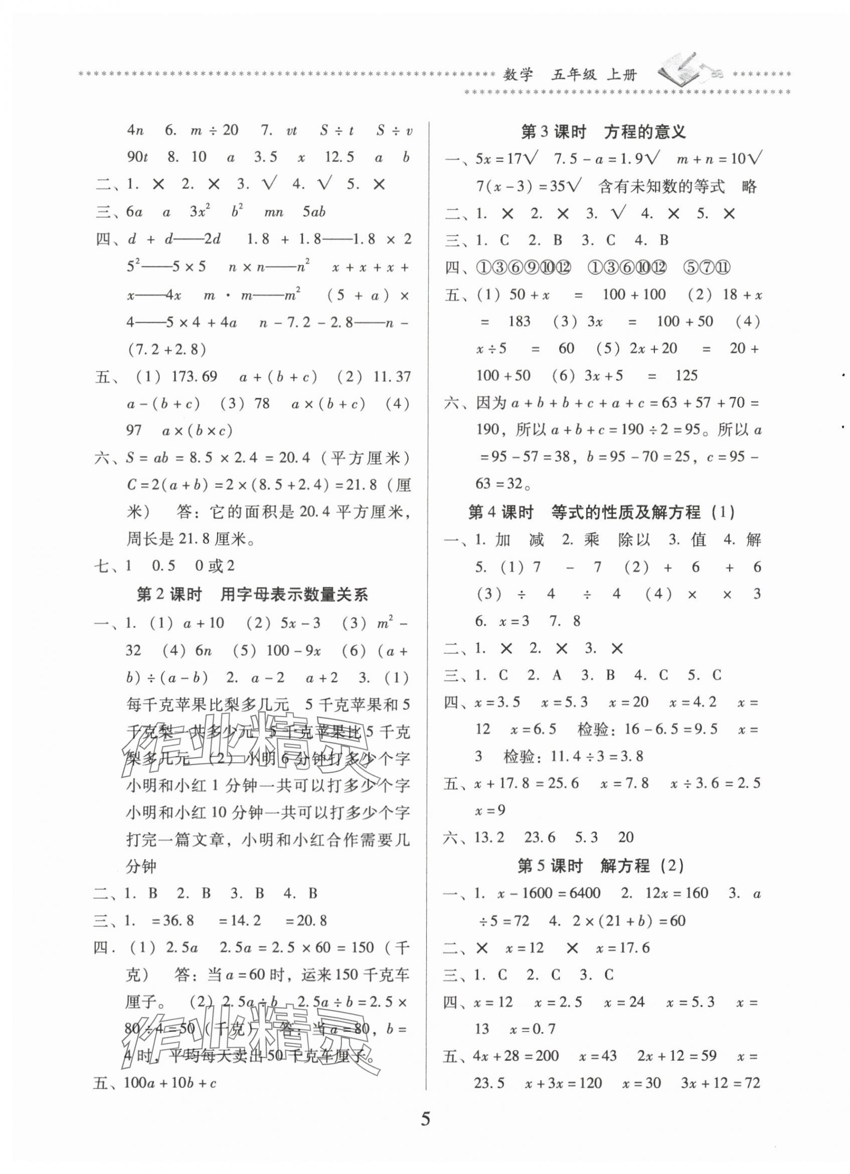 2024年名校核心作业本练习加检测五年级数学上册人教版