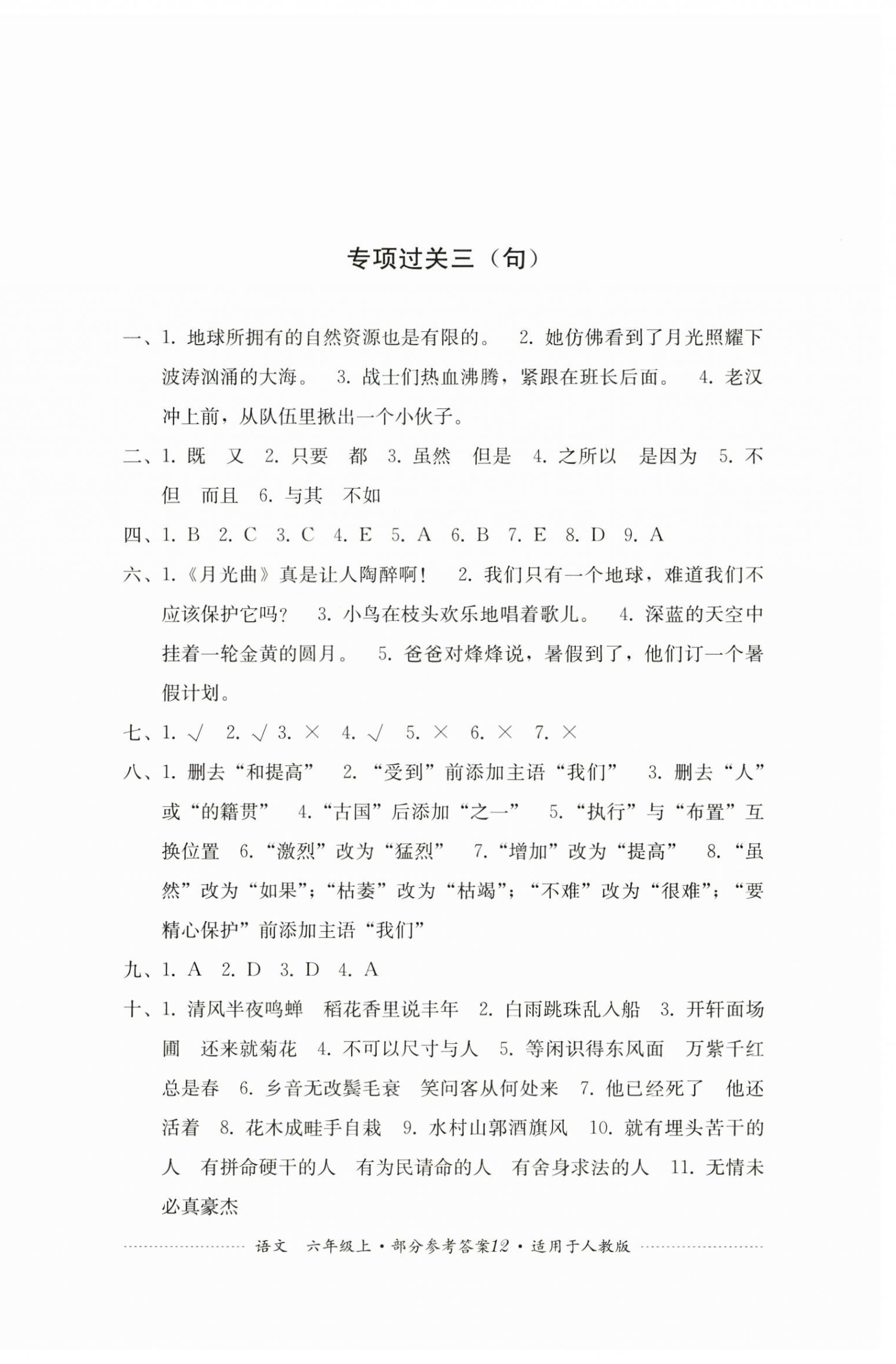 注:目前有些书本章节名称可能整理的还不是很完善,但都是按照顺序排列的,请同学们按照顺序仔细查找。练习册 2024年过关清单四川教育出版社六年级语文上册人教版 答案主要是用来给同学们做完题方便对答案用的,请勿直接抄袭。