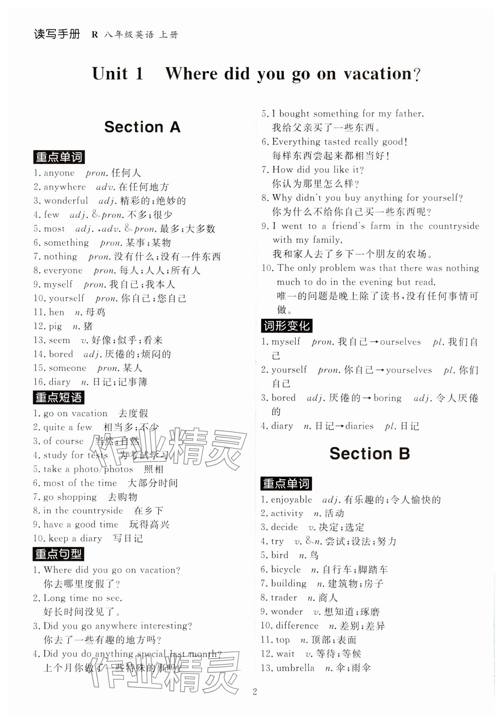 注:目前有些书本章节名称可能整理的还不是很完善,但都是按照顺序排列的,请同学们按照顺序仔细查找。练习册 2024年新起点作业本八年级英语上册人教版 答案主要是用来给同学们做完题方便对答案用的,请勿直接抄袭。