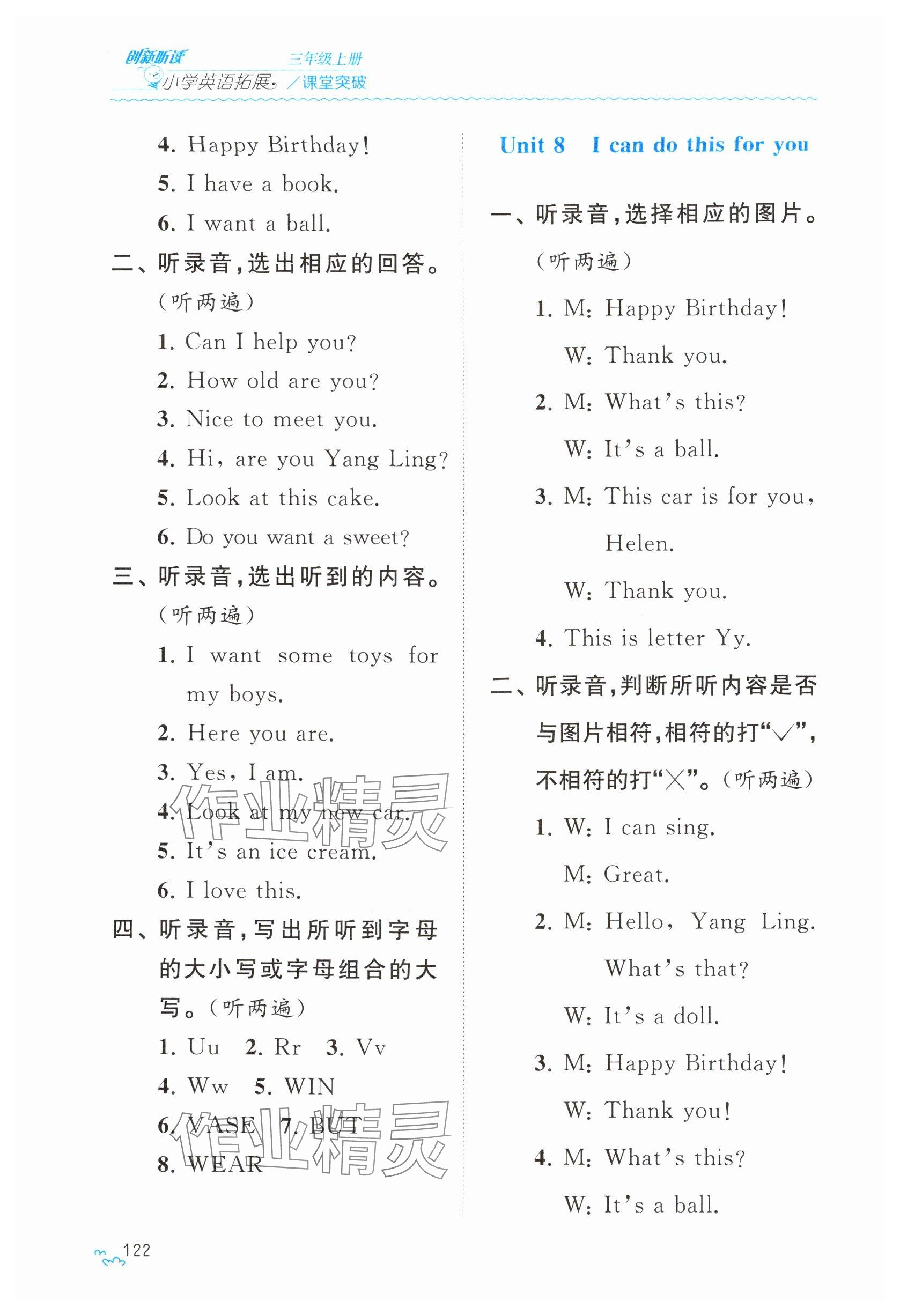注:目前有些书本章节名称可能整理的还不是很完善,但都是按照顺序排列的,请同学们按照顺序仔细查找。练习册 2024年小学拓展课堂突破三年级英语上册译林版 答案主要是用来给同学们做完题方便对答案用的,请勿直接抄袭。