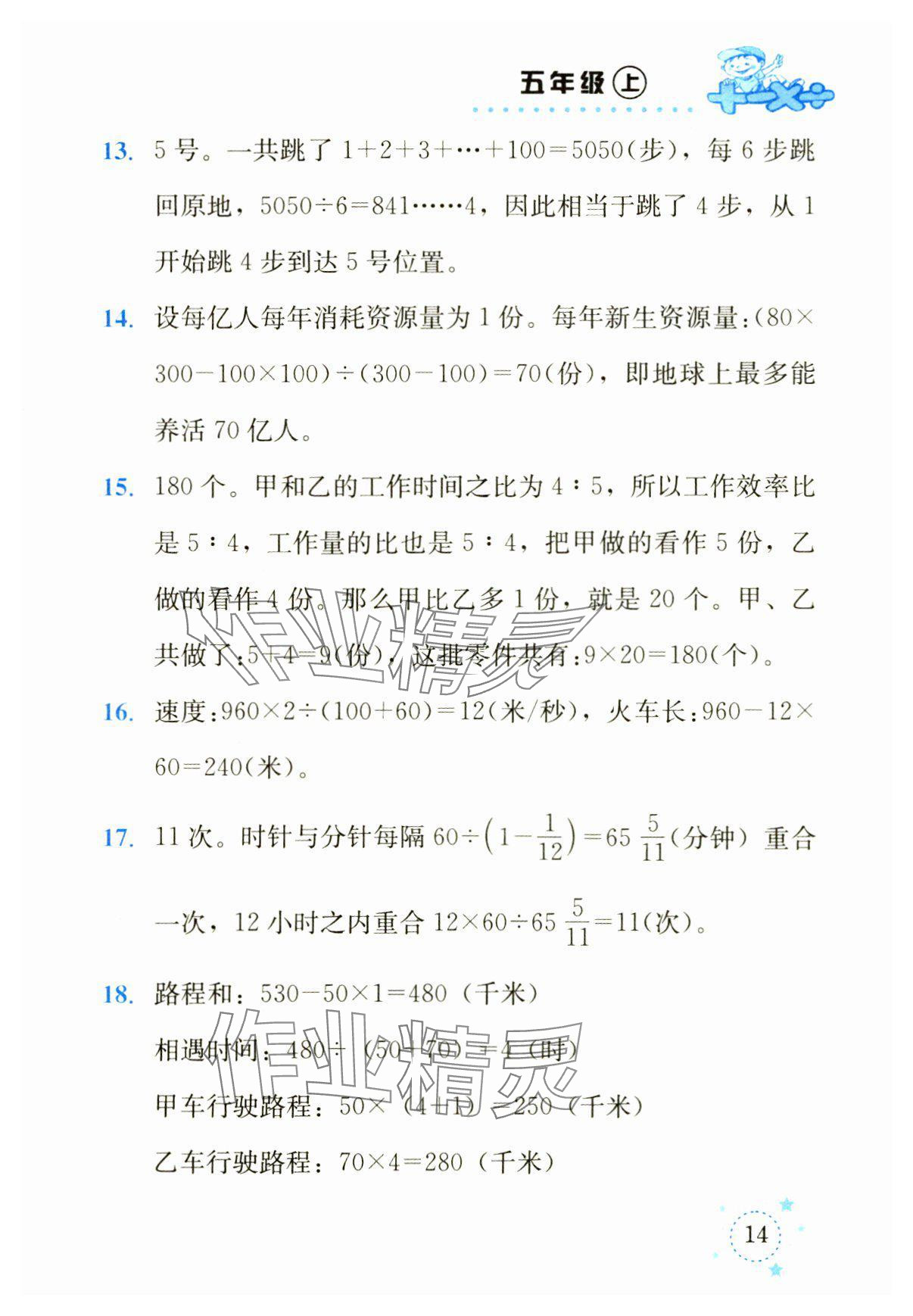 注:目前有些书本章节名称可能整理的还不是很完善,但都是按照顺序排列的,请同学们按照顺序仔细查找。练习册 2024年解决问题专项训练五年级数学上册人教版 答案主要是用来给同学们做完题方便对答案用的,请勿直接抄袭。