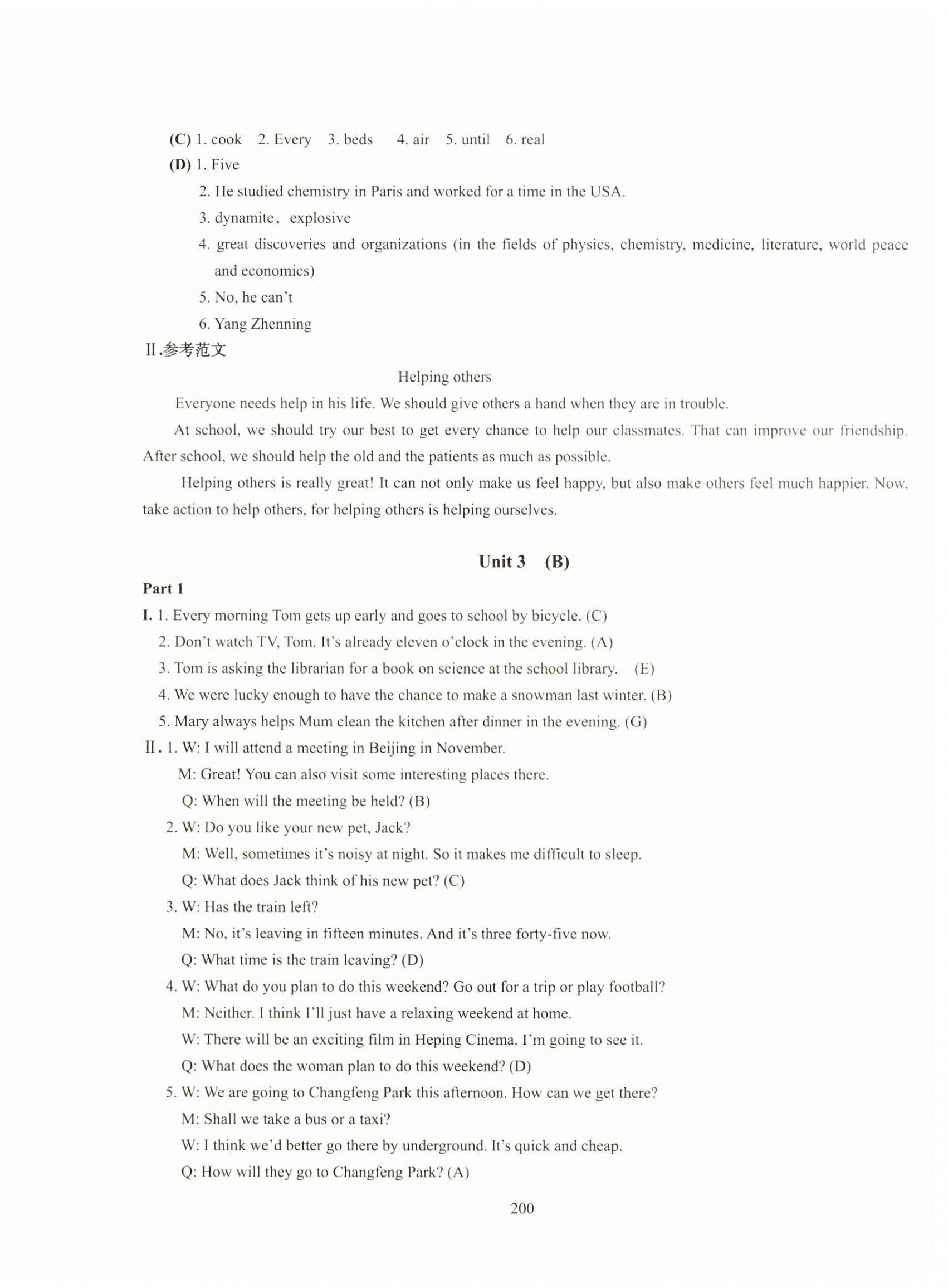 注:目前有些书本章节名称可能整理的还不是很完善,但都是按照顺序排列的,请同学们按照顺序仔细查找。练习册 2024年N版英语综合技能测试八年级上册 答案主要是用来给同学们做完题方便对答案用的,请勿直接抄袭。