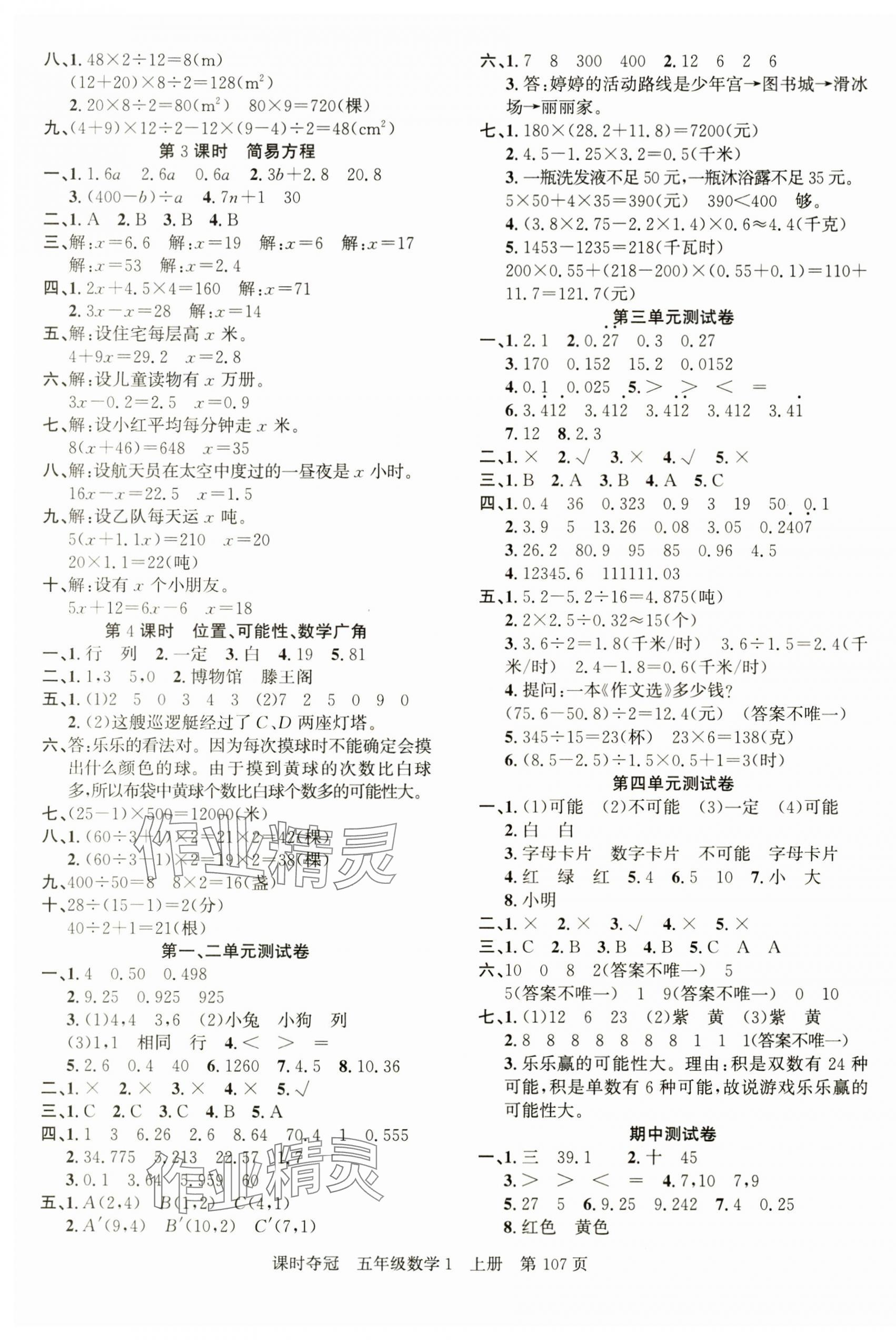 注:目前有些书本章节名称可能整理的还不是很完善,但都是按照顺序排列的,请同学们按照顺序仔细查找。练习册 2024年课时夺冠五年级数学上册人教版 答案主要是用来给同学们做完题方便对答案用的,请勿直接抄袭。