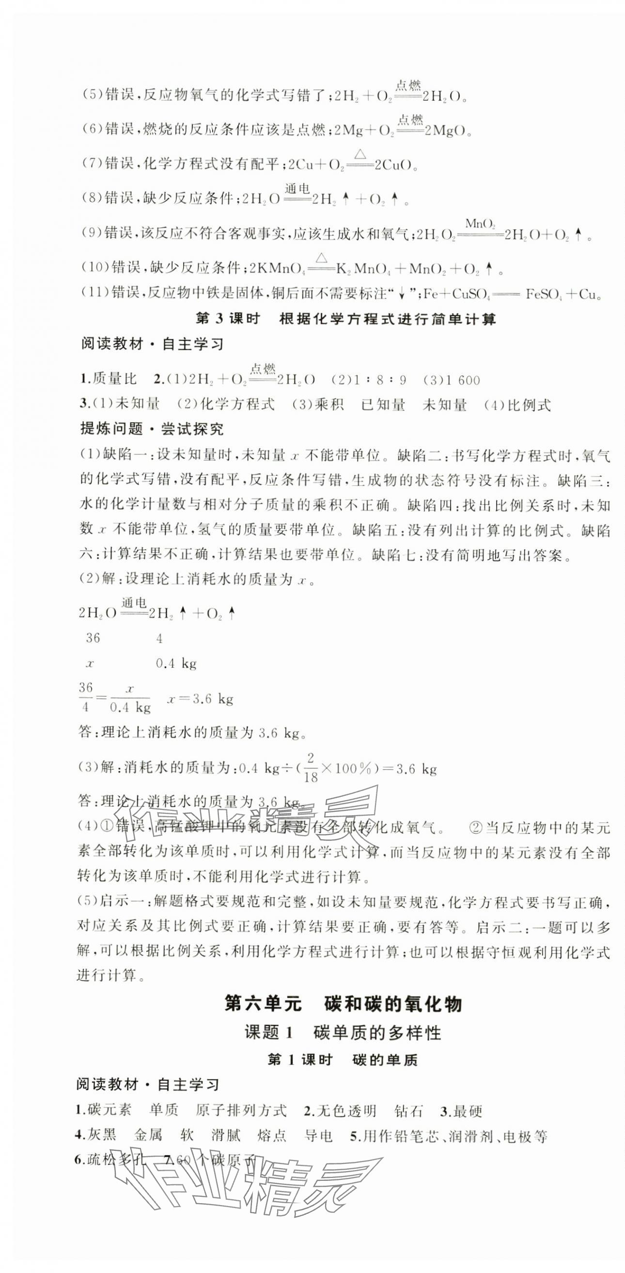 注:目前有些书本章节名称可能整理的还不是很完善,但都是按照顺序排列的,请同学们按照顺序仔细查找。练习册 2024年学本课堂九年级化学上册人教版 答案主要是用来给同学们做完题方便对答案用的,请勿直接抄袭。