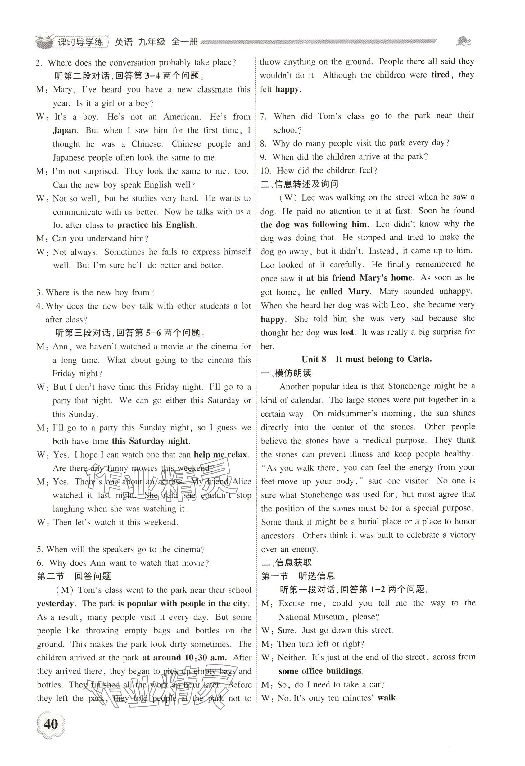 注:目前有些书本章节名称可能整理的还不是很完善,但都是按照顺序排列的,请同学们按照顺序仔细查找。练习册 2024年课时导学练九年级英语全一册人教版广东专版 答案主要是用来给同学们做完题方便对答案用的,请勿直接抄袭。
