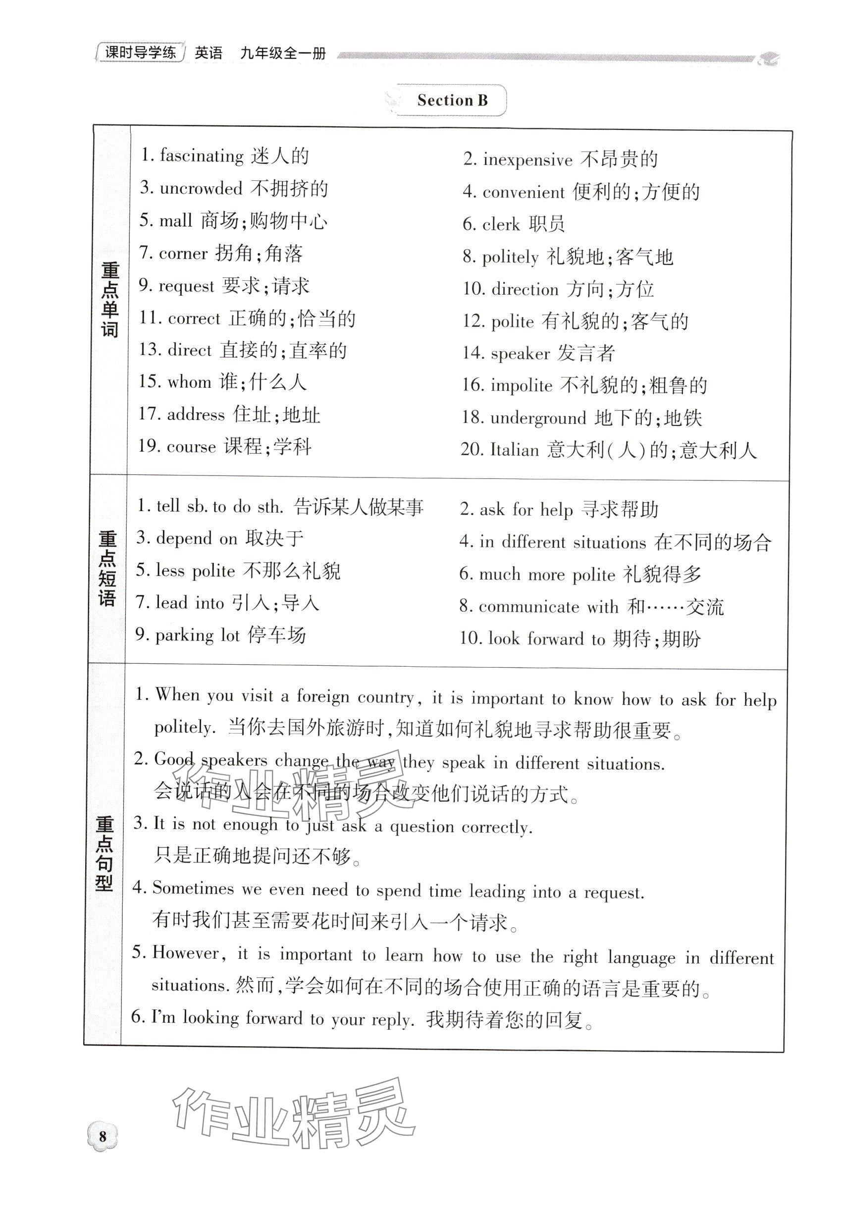 注:目前有些书本章节名称可能整理的还不是很完善,但都是按照顺序排列的,请同学们按照顺序仔细查找。练习册 2024年课时导学练九年级英语全一册人教版广东专版 答案主要是用来给同学们做完题方便对答案用的,请勿直接抄袭。