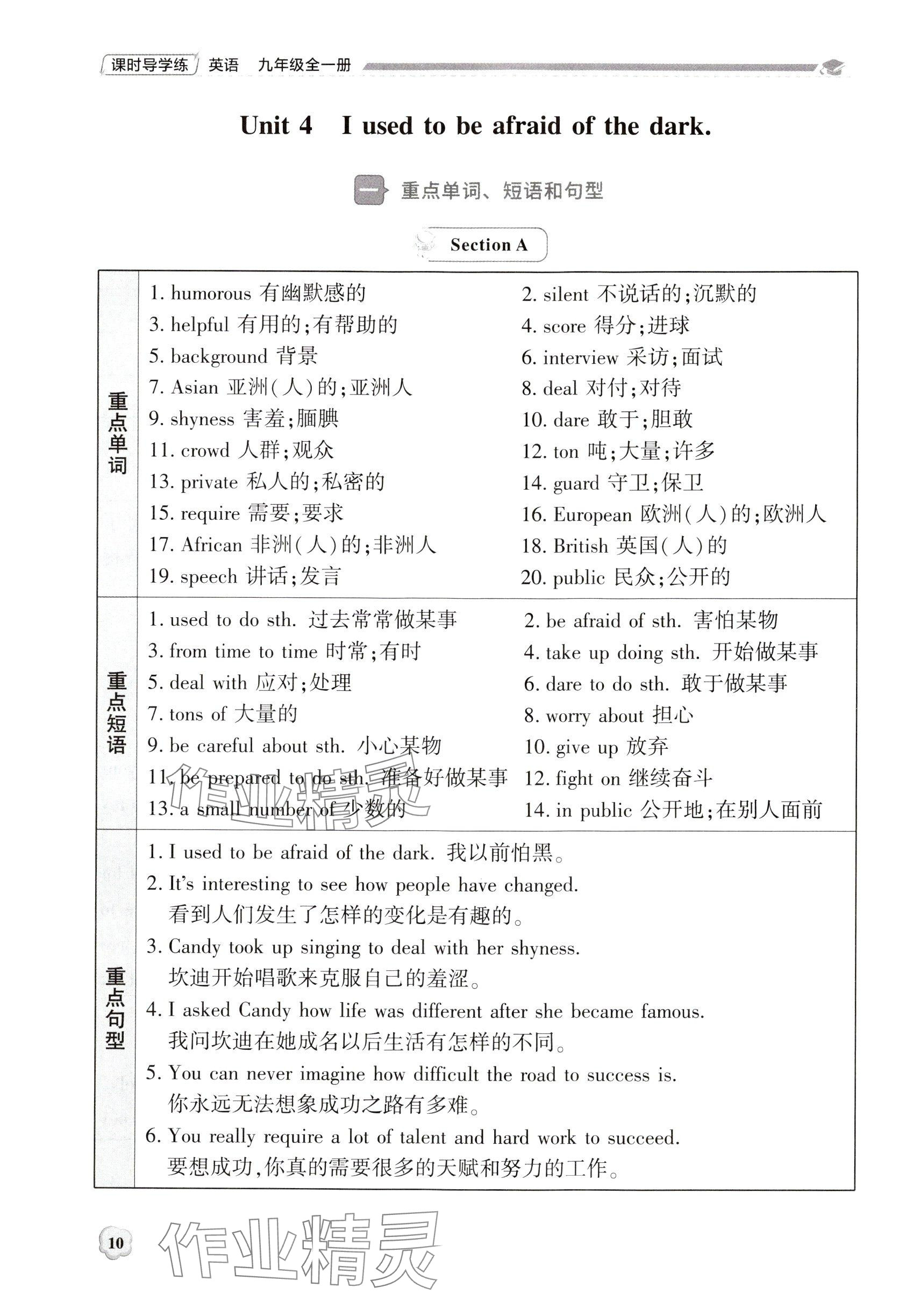 注:目前有些书本章节名称可能整理的还不是很完善,但都是按照顺序排列的,请同学们按照顺序仔细查找。练习册 2024年课时导学练九年级英语全一册人教版广东专版 答案主要是用来给同学们做完题方便对答案用的,请勿直接抄袭。