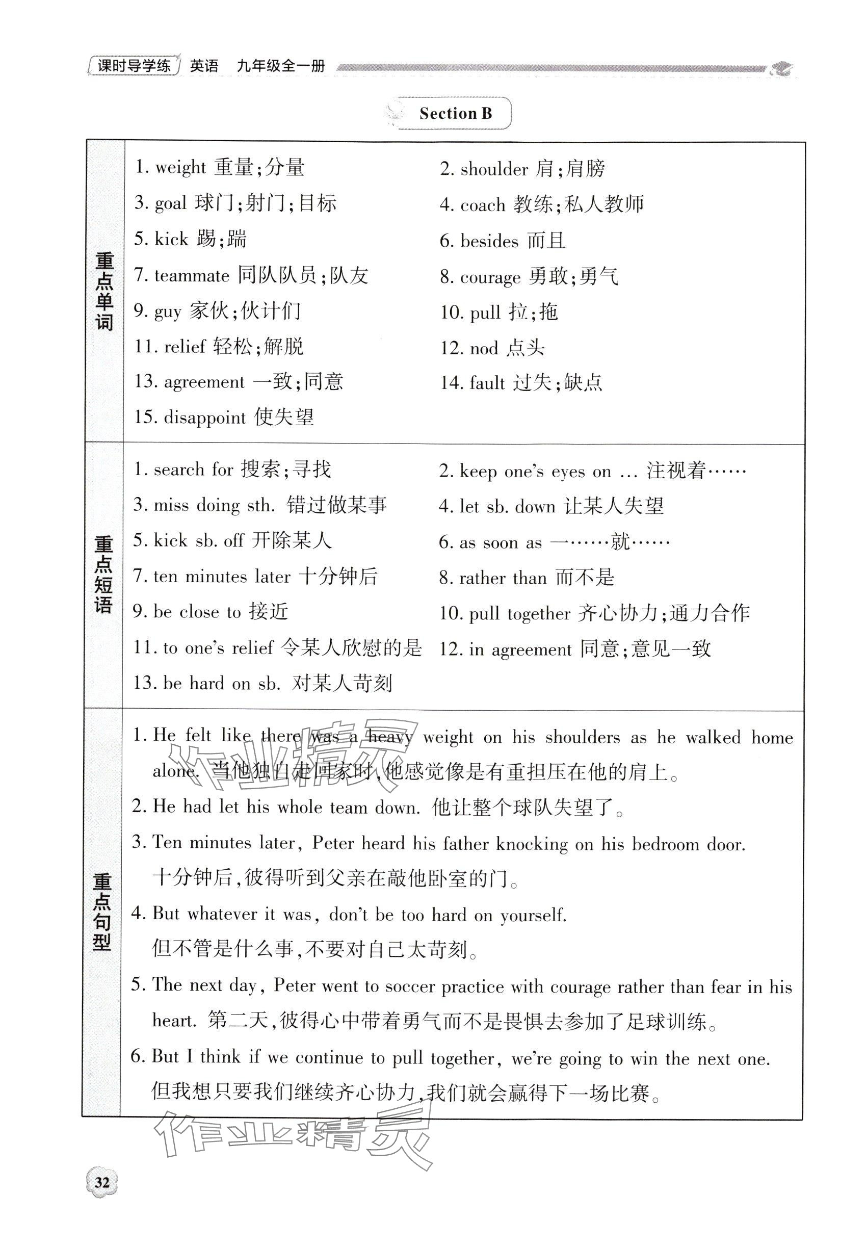 注:目前有些书本章节名称可能整理的还不是很完善,但都是按照顺序排列的,请同学们按照顺序仔细查找。练习册 2024年课时导学练九年级英语全一册人教版广东专版 答案主要是用来给同学们做完题方便对答案用的,请勿直接抄袭。