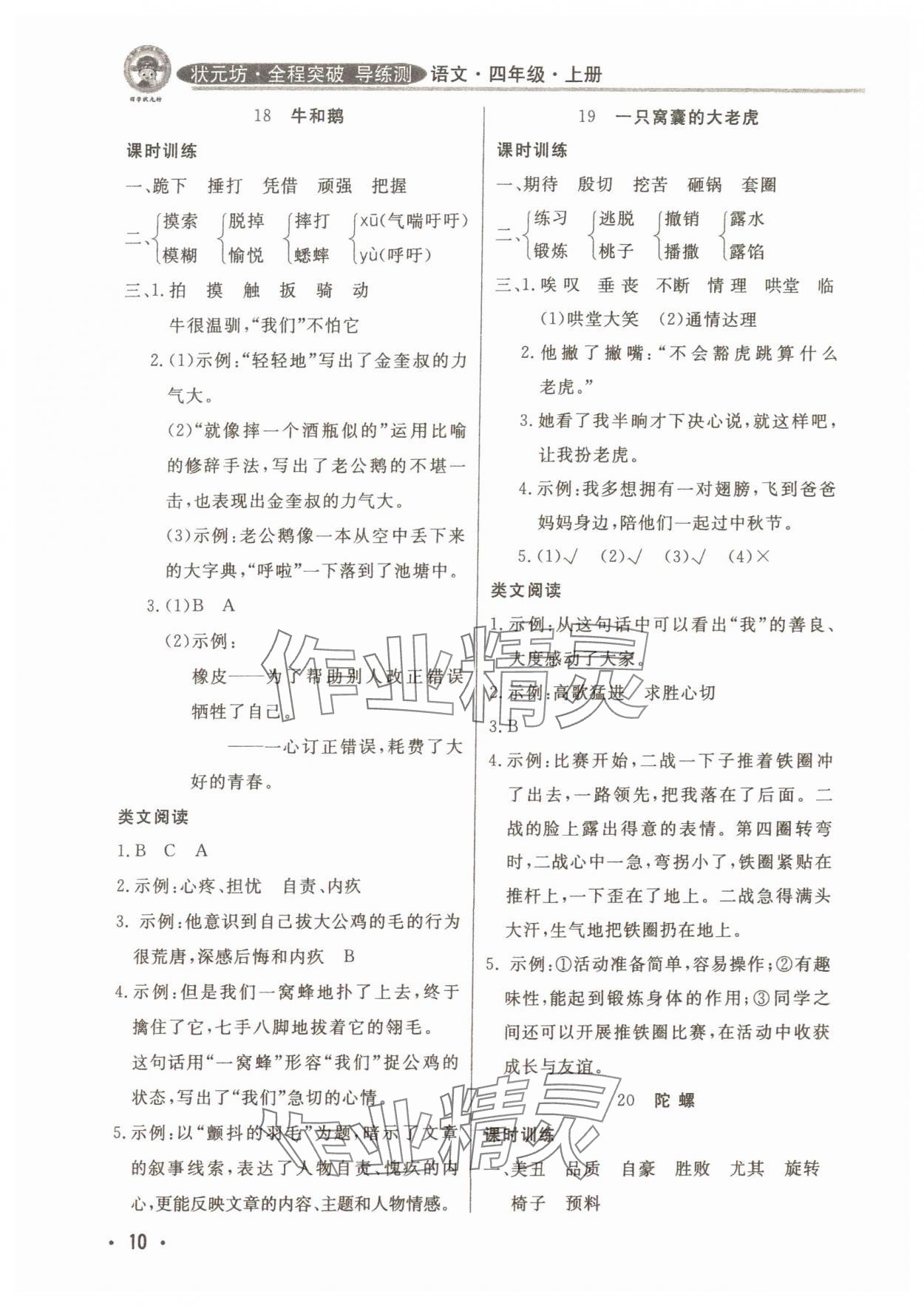 2024年状元坊全程突破导练测四年级语文上册人教版佛山专版