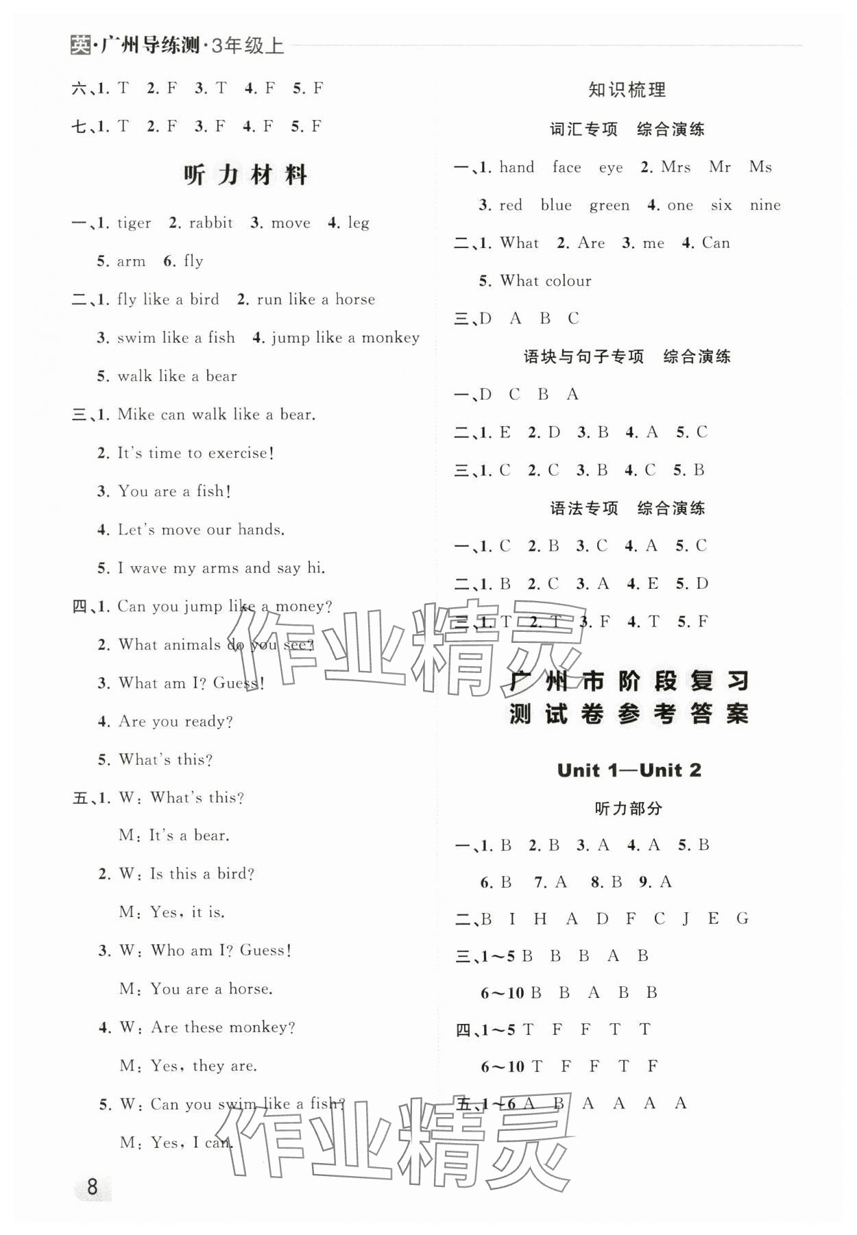 注:目前有些书本章节名称可能整理的还不是很完善,但都是按照顺序排列的,请同学们按照顺序仔细查找。练习册 2024年状元坊全程突破导练测三年级英语上册教科版 答案主要是用来给同学们做完题方便对答案用的,请勿直接抄袭。