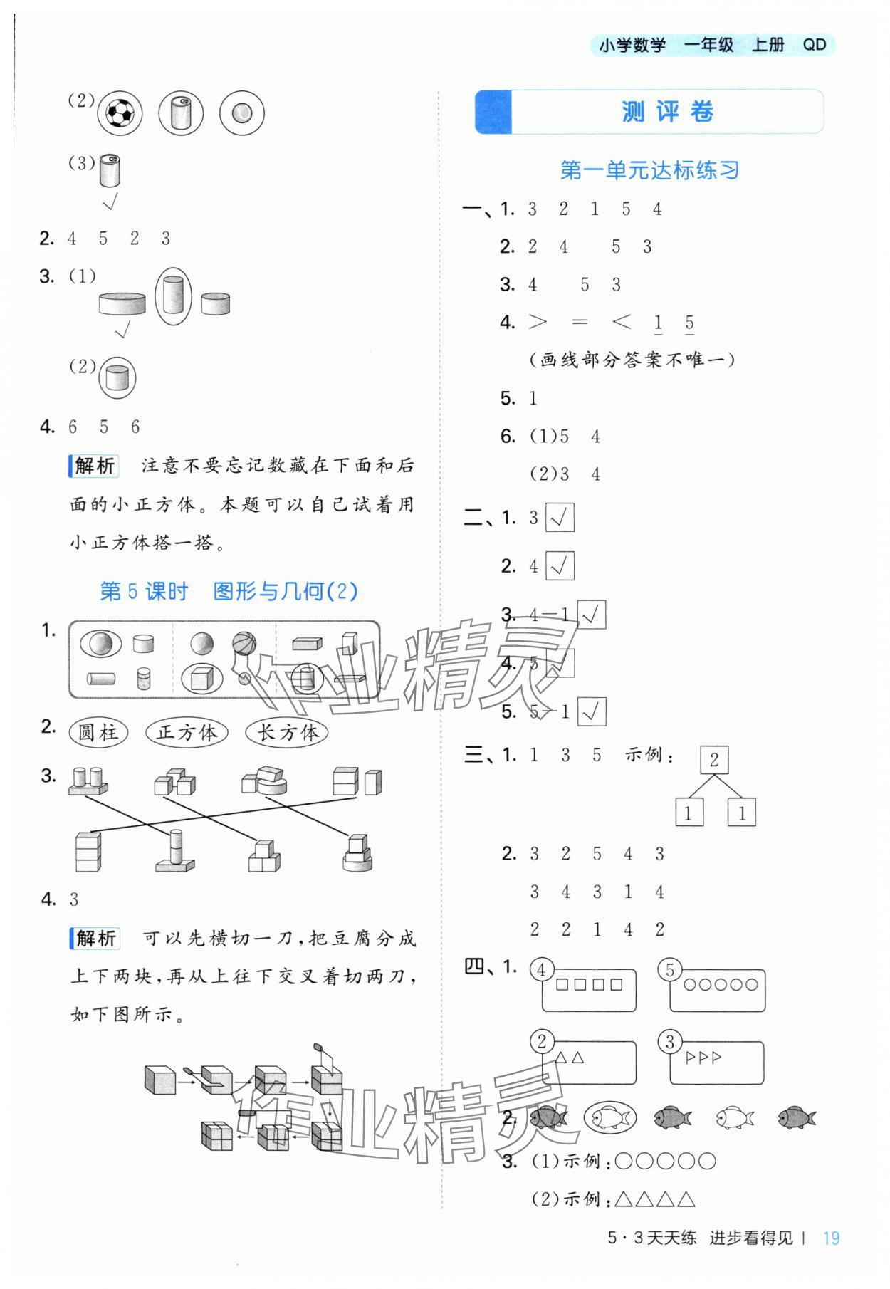 注:目前有些书本章节名称可能整理的还不是很完善,但都是按照顺序排列的,请同学们按照顺序仔细查找。练习册 2024年53天天练一年级数学上册青岛版 答案主要是用来给同学们做完题方便对答案用的,请勿直接抄袭。