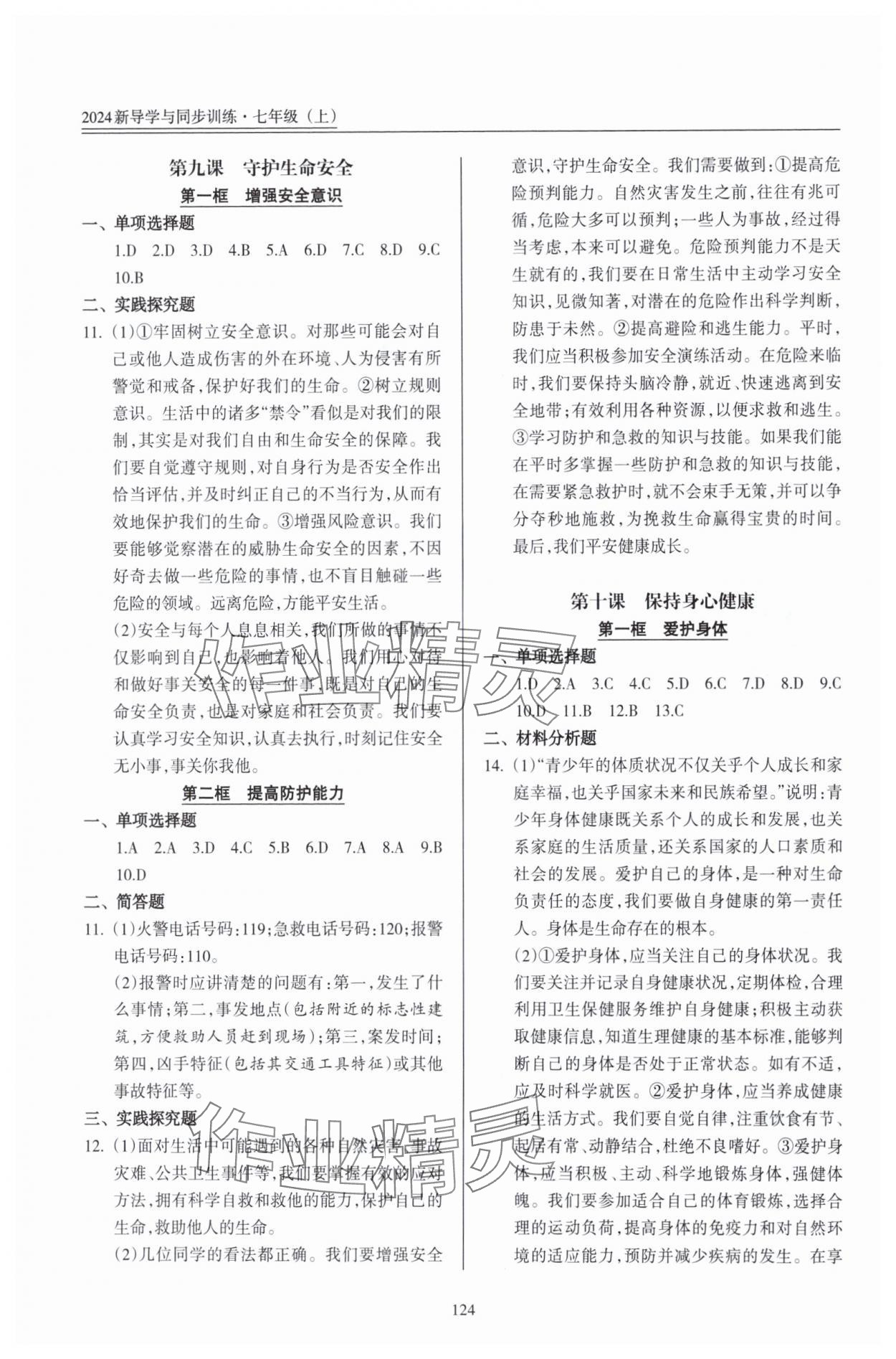 注:目前有些书本章节名称可能整理的还不是很完善,但都是按照顺序排列的,请同学们按照顺序仔细查找。练习册 2024年道德与法治一本通新导学与同步训练七年级上册人教版 答案主要是用来给同学们做完题方便对答案用的,请勿直接抄袭。
