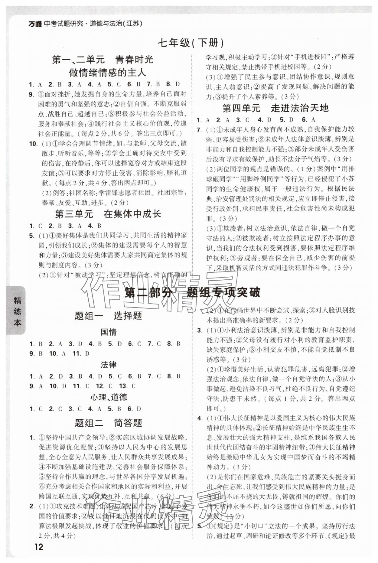 注:目前有些书本章节名称可能整理的还不是很完善,但都是按照顺序排列的,请同学们按照顺序仔细查找。练习册 2025年万唯中考试题研究道德与法治江苏专版 答案主要是用来给同学们做完题方便对答案用的,请勿直接抄袭。
