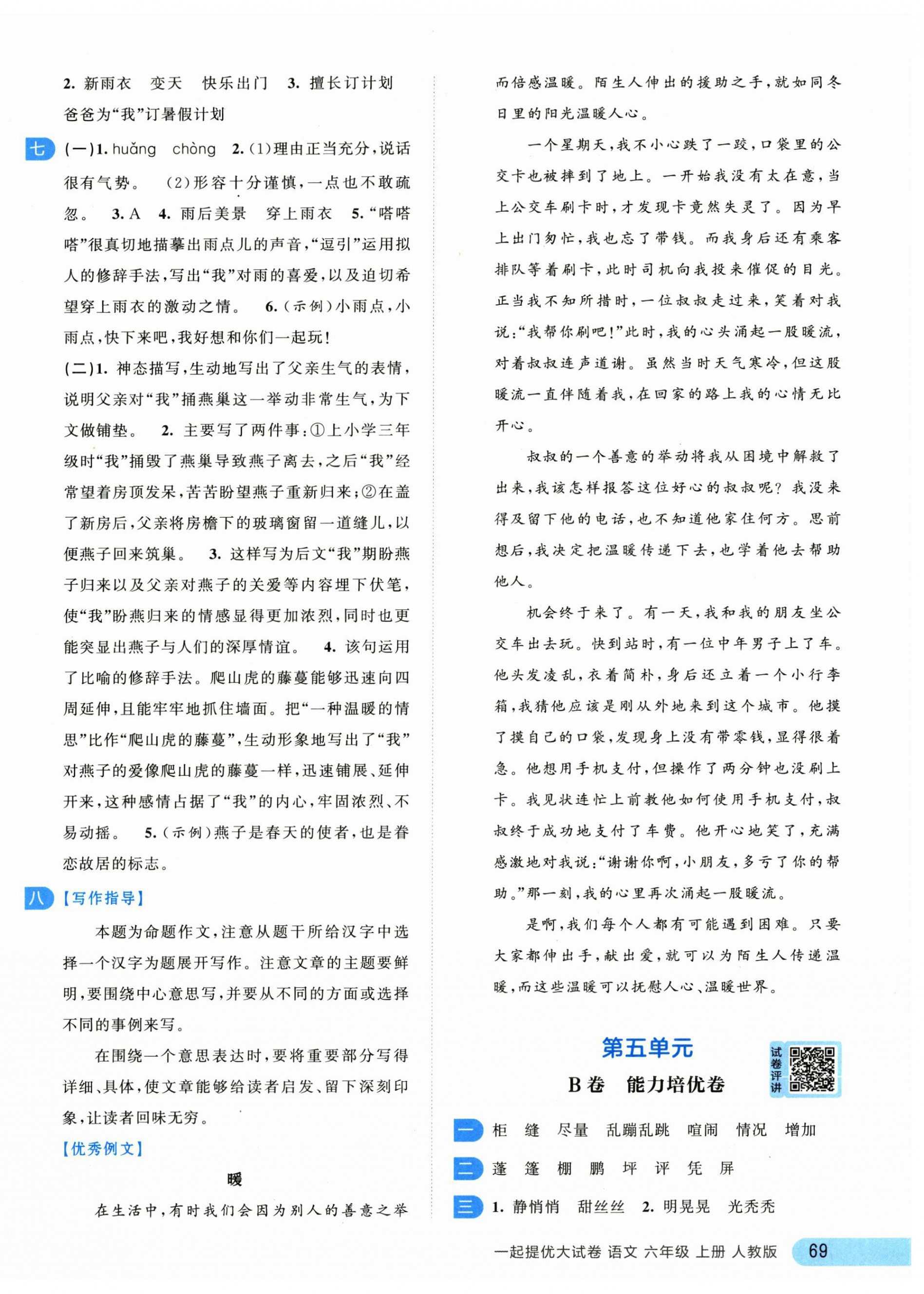 注:目前有些书本章节名称可能整理的还不是很完善,但都是按照顺序排列的,请同学们按照顺序仔细查找。练习册 2024年一起提优大试卷六年级语文上册人教版江苏专版 答案主要是用来给同学们做完题方便对答案用的,请勿直接抄袭。