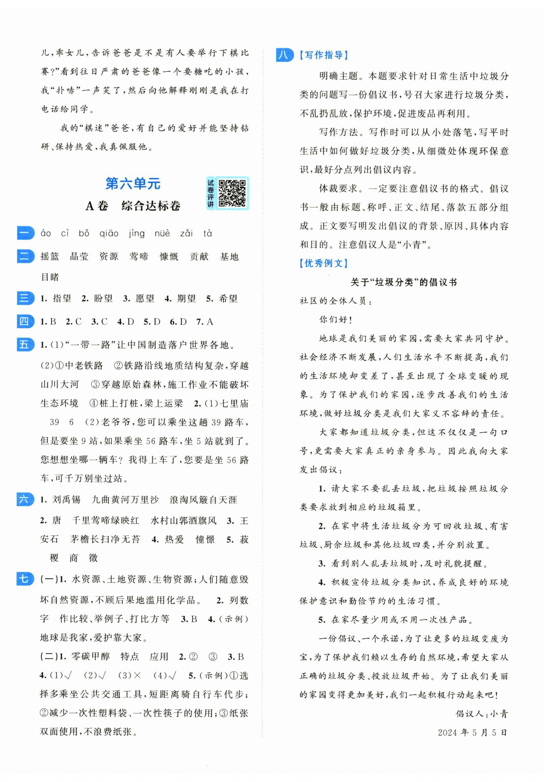 注:目前有些书本章节名称可能整理的还不是很完善,但都是按照顺序排列的,请同学们按照顺序仔细查找。练习册 2024年一起提优大试卷六年级语文上册人教版江苏专版 答案主要是用来给同学们做完题方便对答案用的,请勿直接抄袭。