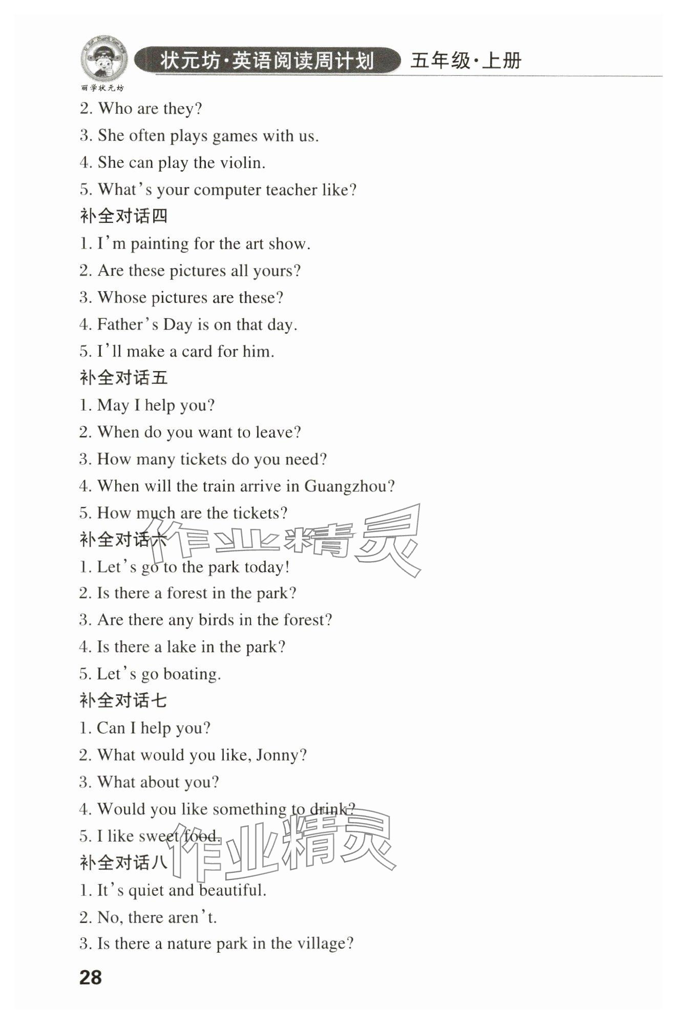 注:目前有些书本章节名称可能整理的还不是很完善,但都是按照顺序排列的,请同学们按照顺序仔细查找。练习册 2024年英语阅读周计划五年级英语上册人教版佛山专版 答案主要是用来给同学们做完题方便对答案用的,请勿直接抄袭。