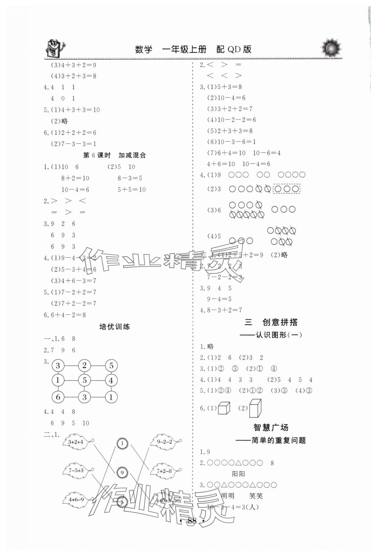 注:目前有些书本章节名称可能整理的还不是很完善,但都是按照顺序排列的,请同学们按照顺序仔细查找。练习册 2024年名师导学伴你行同步练习一年级数学上册青岛版 答案主要是用来给同学们做完题方便对答案用的,请勿直接抄袭。