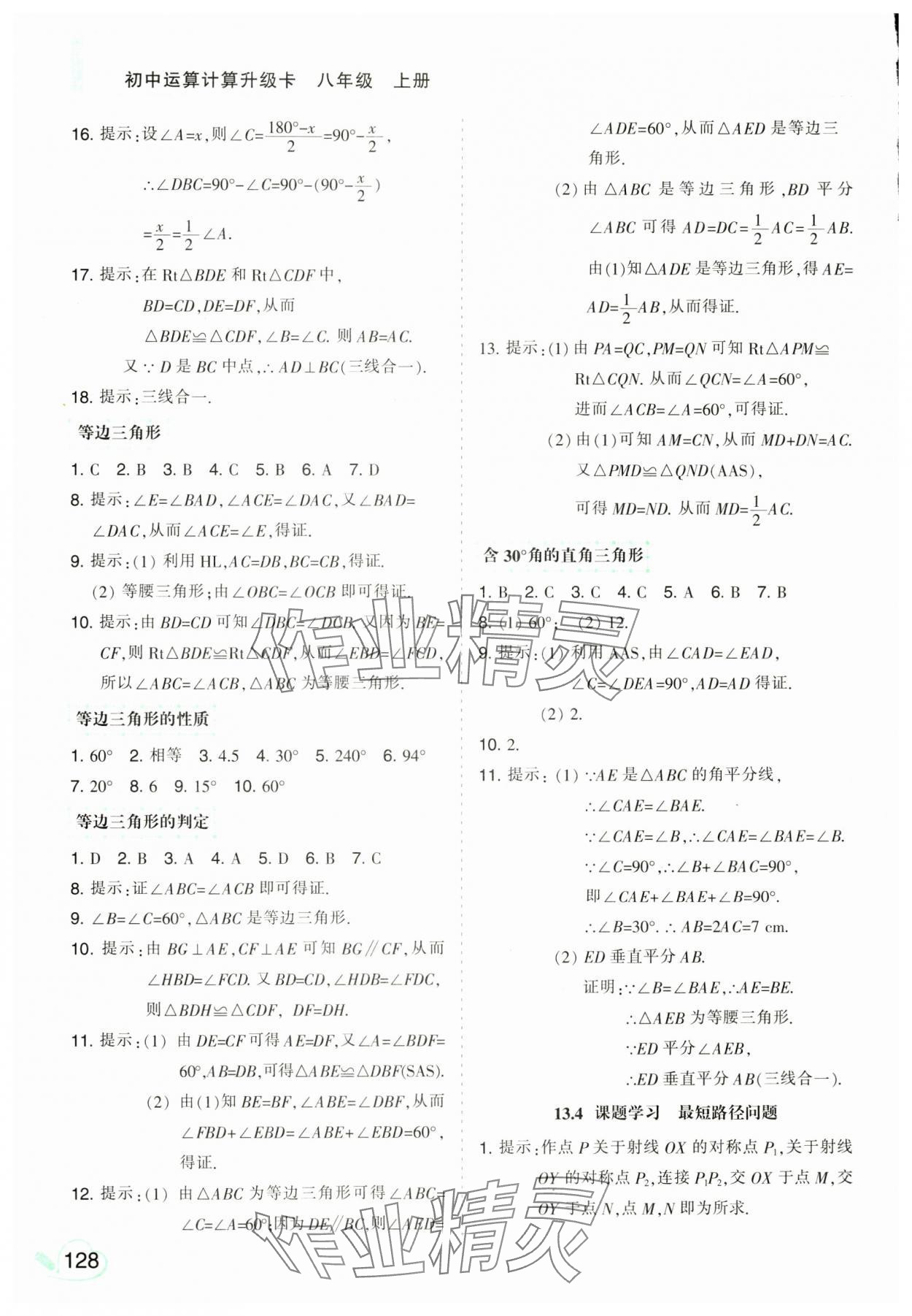 注:目前有些书本章节名称可能整理的还不是很完善,但都是按照顺序排列的,请同学们按照顺序仔细查找。练习册 2024年初中运算计算升级卡八年级上册人教版 答案主要是用来给同学们做完题方便对答案用的,请勿直接抄袭。