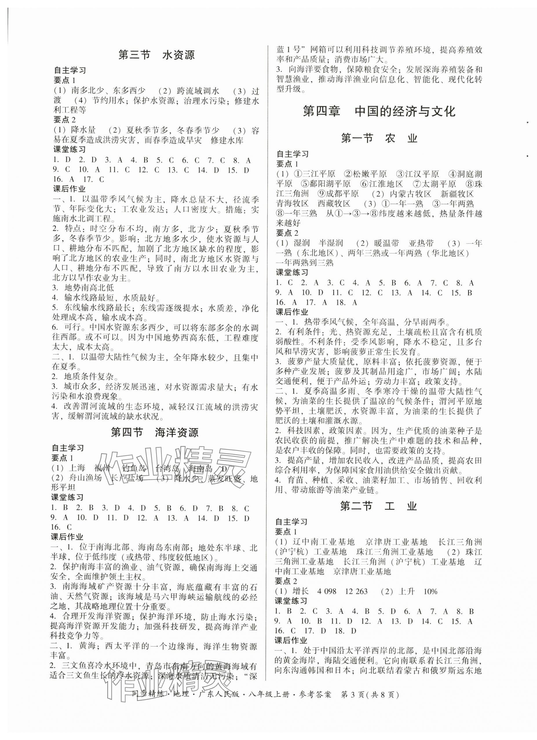 注:目前有些书本章节名称可能整理的还不是很完善,但都是按照顺序排列的,请同学们按照顺序仔细查找。练习册 2024年同步精练广东人民出版社八年级地理上册粤人版四川专版 答案主要是用来给同学们做完题方便对答案用的,请勿直接抄袭。