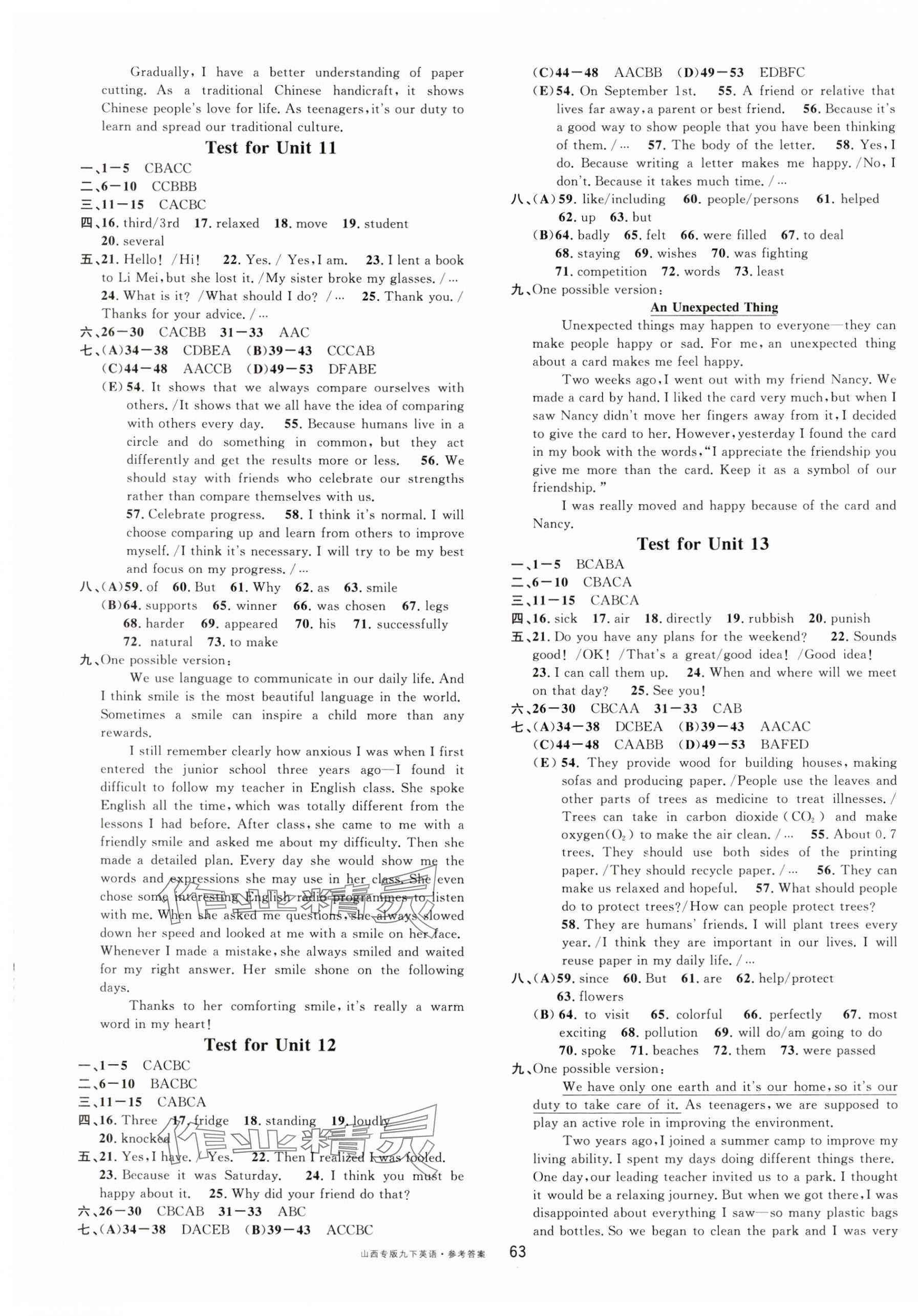注:目前有些书本章节名称可能整理的还不是很完善,但都是按照顺序排列的,请同学们按照顺序仔细查找。练习册 2025年名校课堂九年级英语下册人教版山西专版 答案主要是用来给同学们做完题方便对答案用的,请勿直接抄袭。