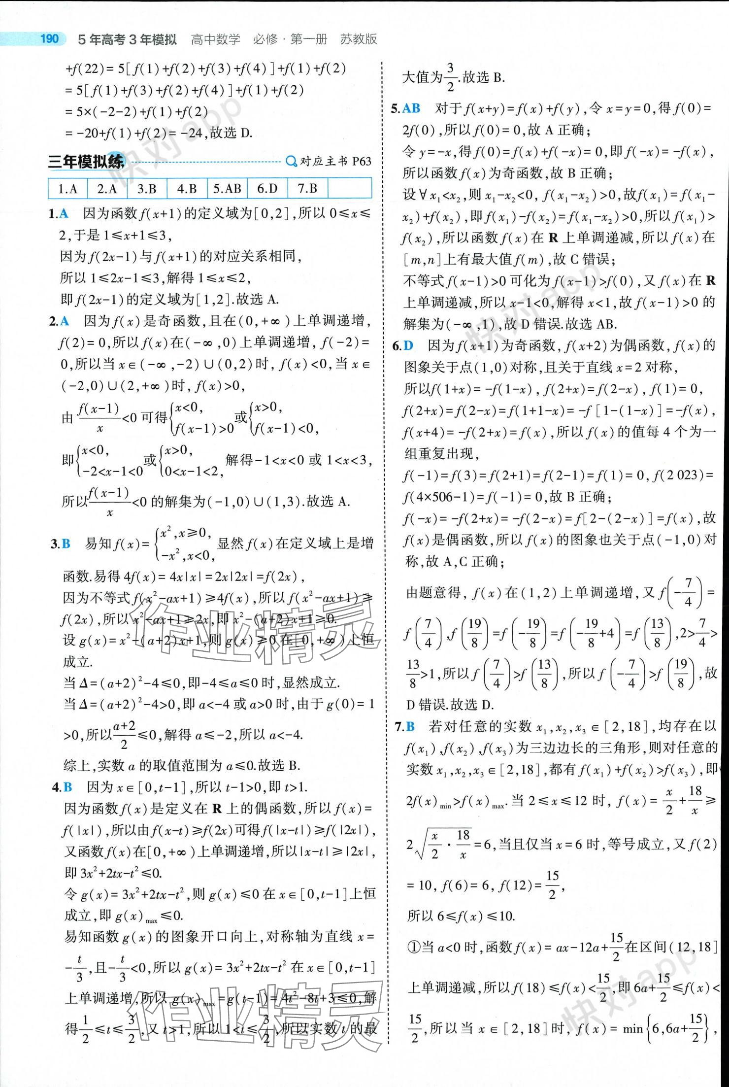 注:目前有些书本章节名称可能整理的还不是很完善,但都是按照顺序排列的,请同学们按照顺序仔细查找。练习册 2024年5年高考3年模拟高中数学必修第一册苏教版 答案主要是用来给同学们做完题方便对答案用的,请勿直接抄袭。