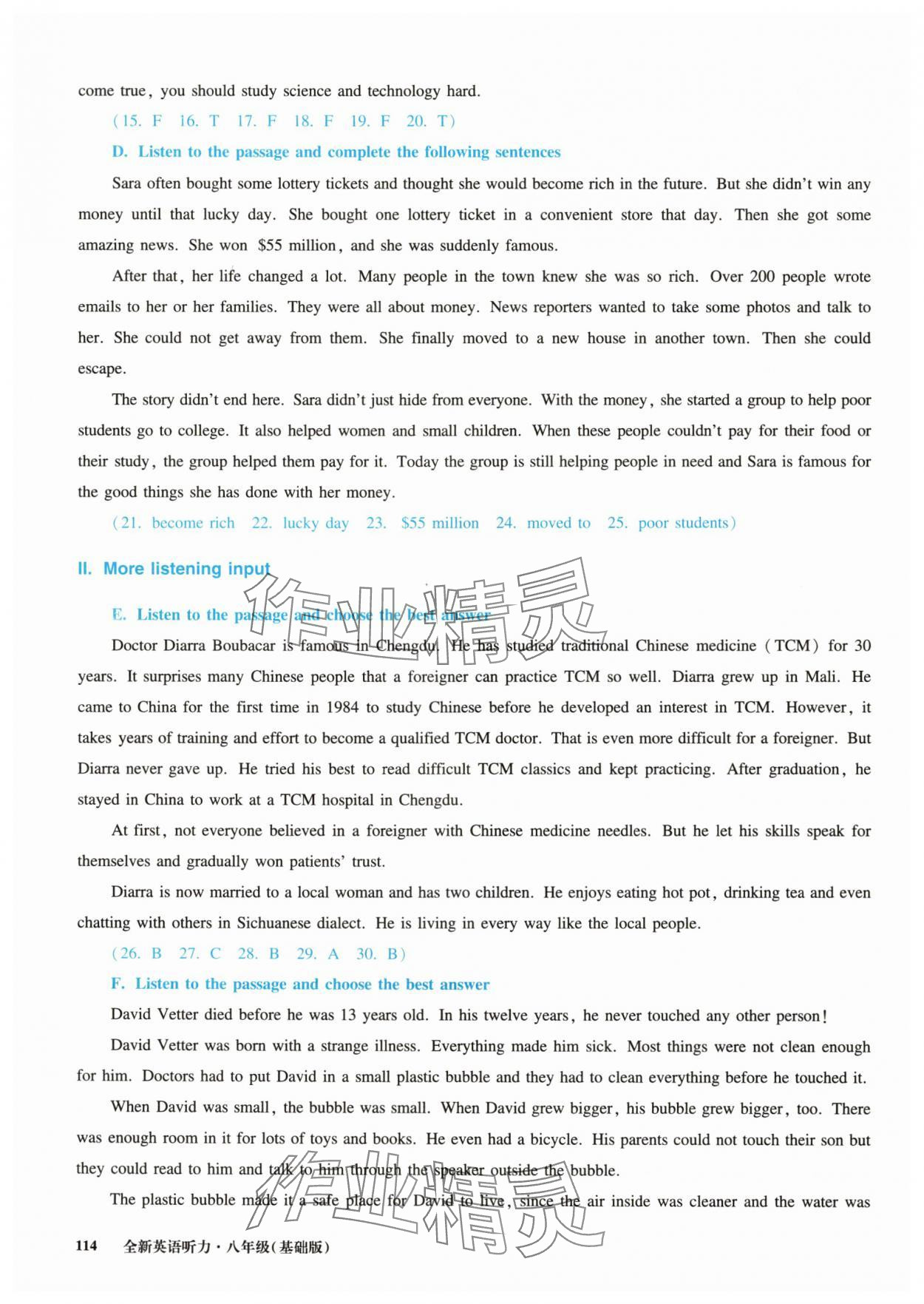 注:目前有些书本章节名称可能整理的还不是很完善,但都是按照顺序排列的,请同学们按照顺序仔细查找。练习册 2024年全新英语听力八年级上册沪教版五四制 答案主要是用来给同学们做完题方便对答案用的,请勿直接抄袭。