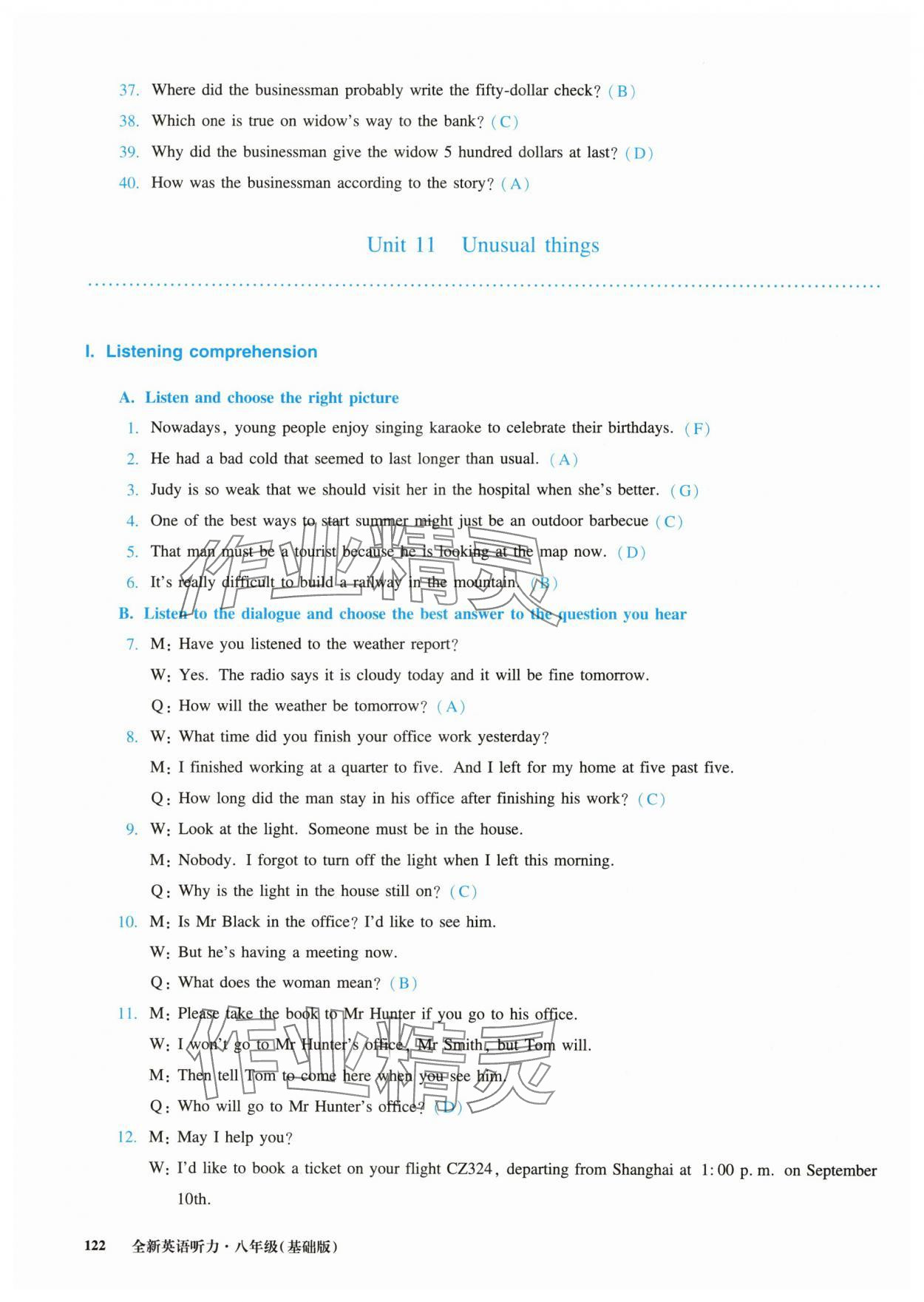 注:目前有些书本章节名称可能整理的还不是很完善,但都是按照顺序排列的,请同学们按照顺序仔细查找。练习册 2024年全新英语听力八年级上册沪教版五四制 答案主要是用来给同学们做完题方便对答案用的,请勿直接抄袭。