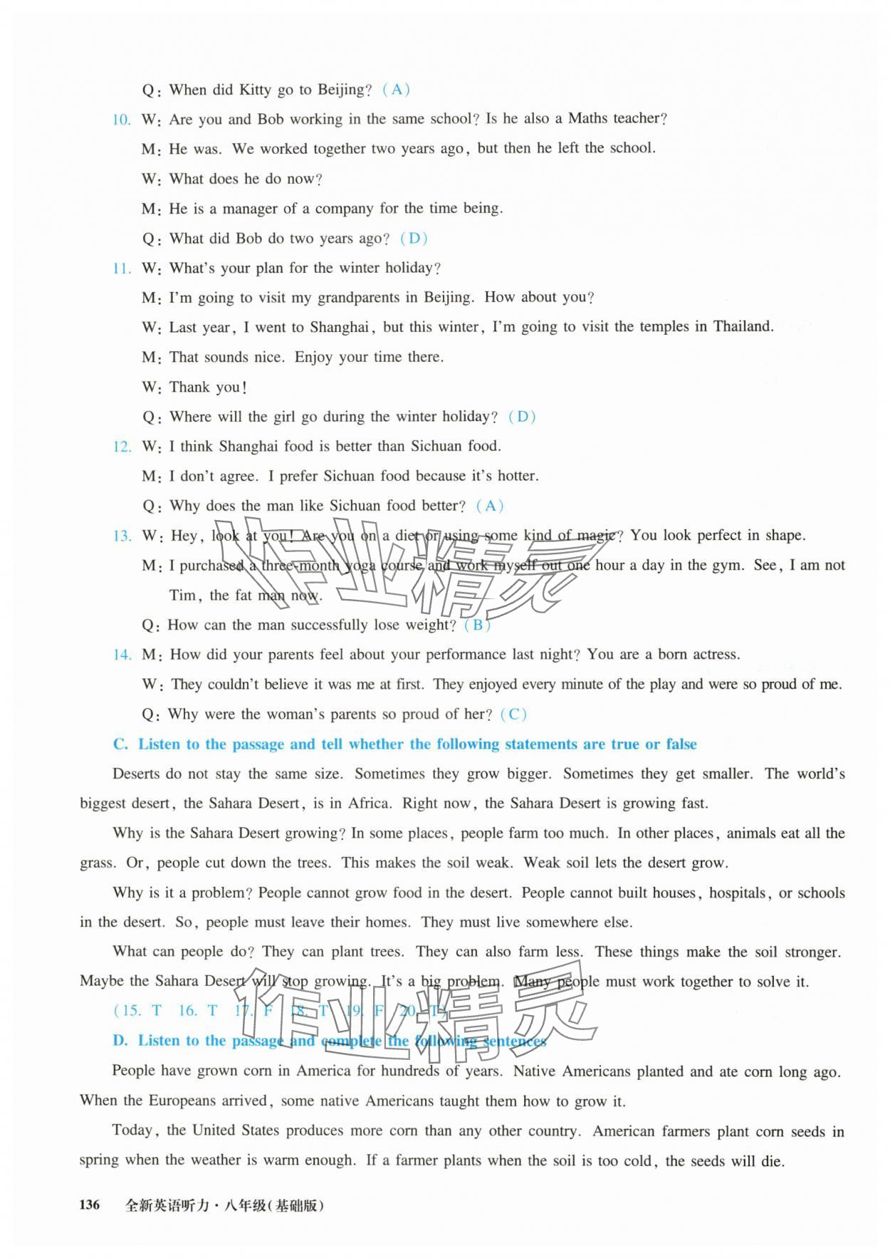注:目前有些书本章节名称可能整理的还不是很完善,但都是按照顺序排列的,请同学们按照顺序仔细查找。练习册 2024年全新英语听力八年级上册沪教版五四制 答案主要是用来给同学们做完题方便对答案用的,请勿直接抄袭。