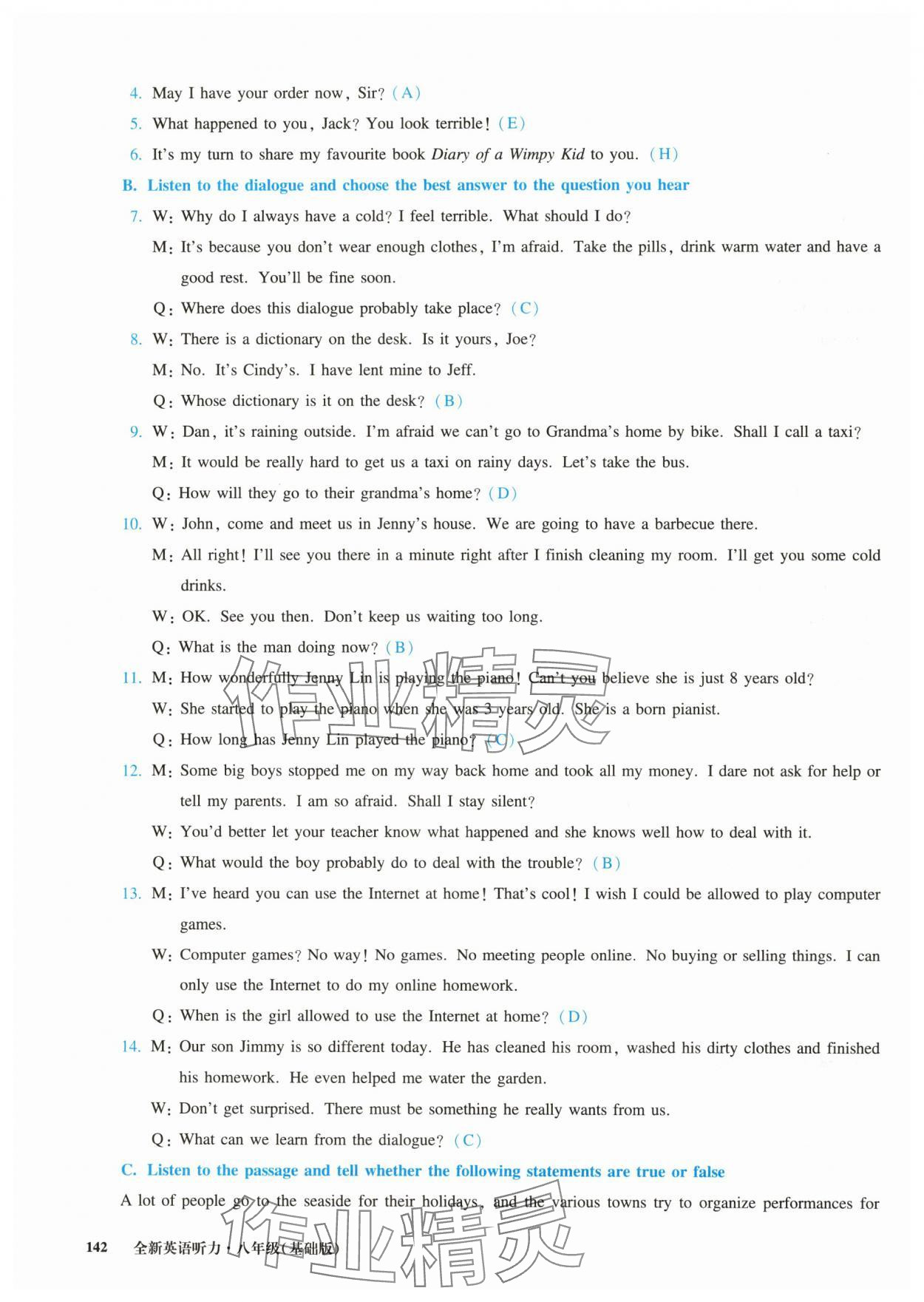 注:目前有些书本章节名称可能整理的还不是很完善,但都是按照顺序排列的,请同学们按照顺序仔细查找。练习册 2024年全新英语听力八年级上册沪教版五四制 答案主要是用来给同学们做完题方便对答案用的,请勿直接抄袭。