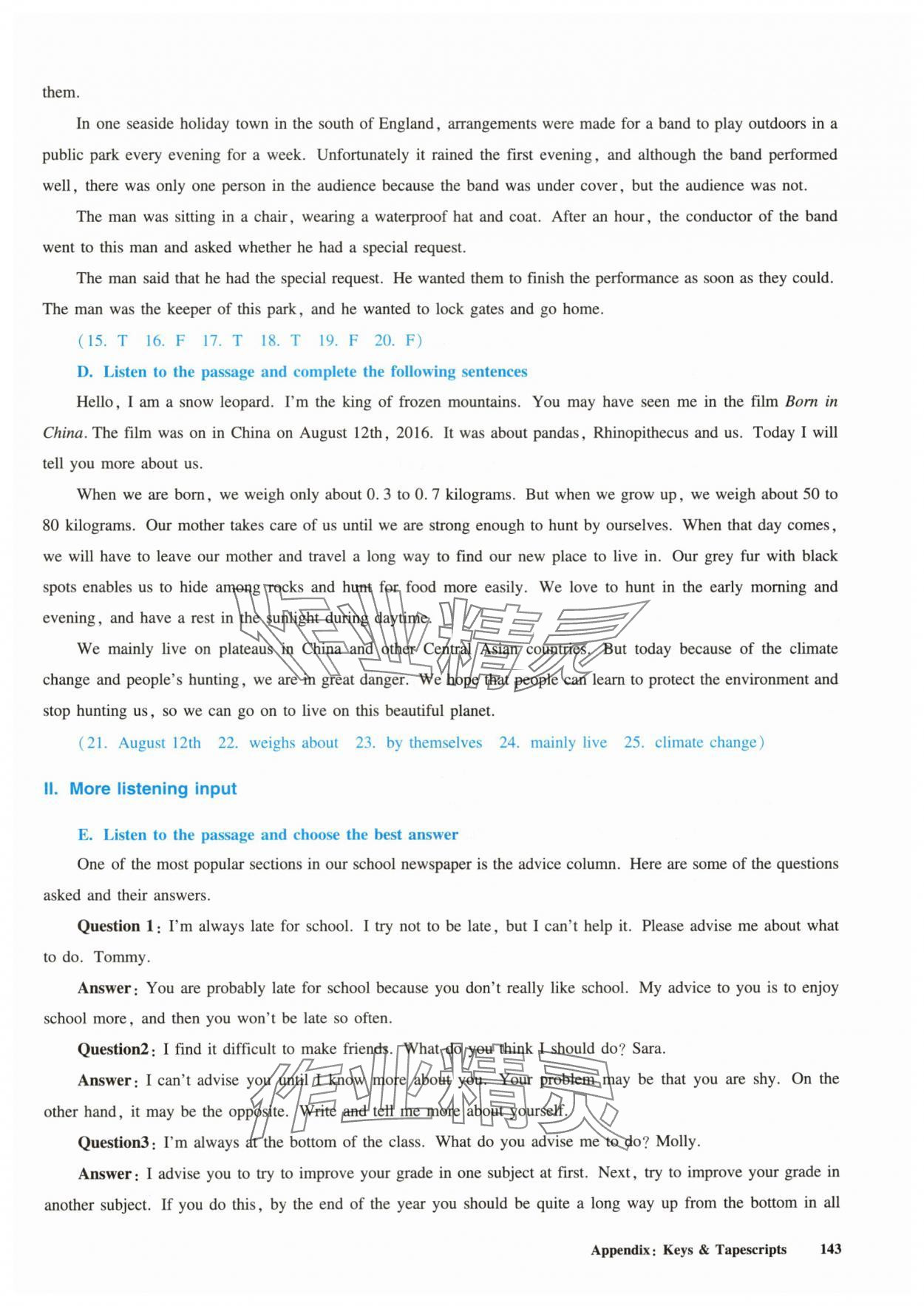 注:目前有些书本章节名称可能整理的还不是很完善,但都是按照顺序排列的,请同学们按照顺序仔细查找。练习册 2024年全新英语听力八年级上册沪教版五四制 答案主要是用来给同学们做完题方便对答案用的,请勿直接抄袭。