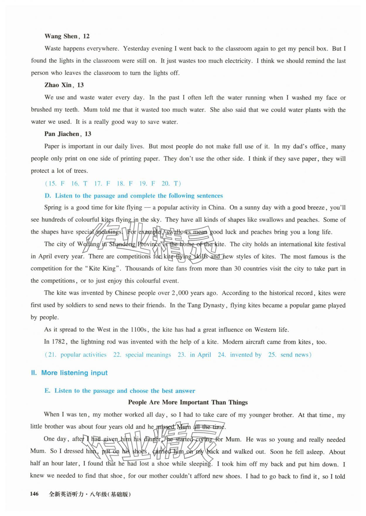 注:目前有些书本章节名称可能整理的还不是很完善,但都是按照顺序排列的,请同学们按照顺序仔细查找。练习册 2024年全新英语听力八年级上册沪教版五四制 答案主要是用来给同学们做完题方便对答案用的,请勿直接抄袭。
