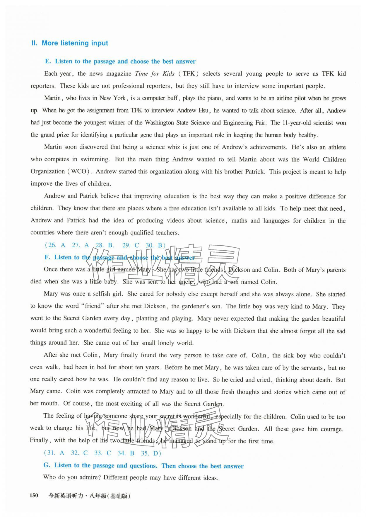 注:目前有些书本章节名称可能整理的还不是很完善,但都是按照顺序排列的,请同学们按照顺序仔细查找。练习册 2024年全新英语听力八年级上册沪教版五四制 答案主要是用来给同学们做完题方便对答案用的,请勿直接抄袭。