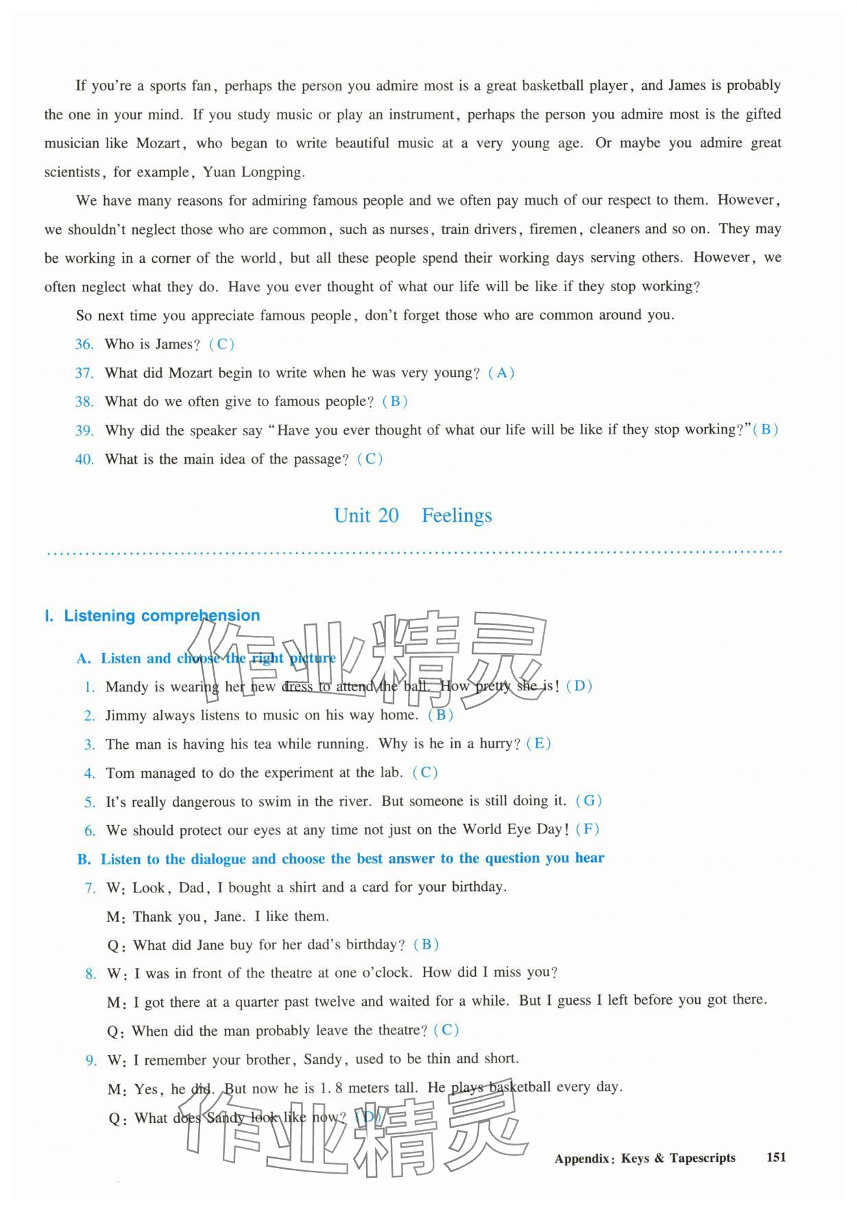 注:目前有些书本章节名称可能整理的还不是很完善,但都是按照顺序排列的,请同学们按照顺序仔细查找。练习册 2024年全新英语听力八年级上册沪教版五四制 答案主要是用来给同学们做完题方便对答案用的,请勿直接抄袭。