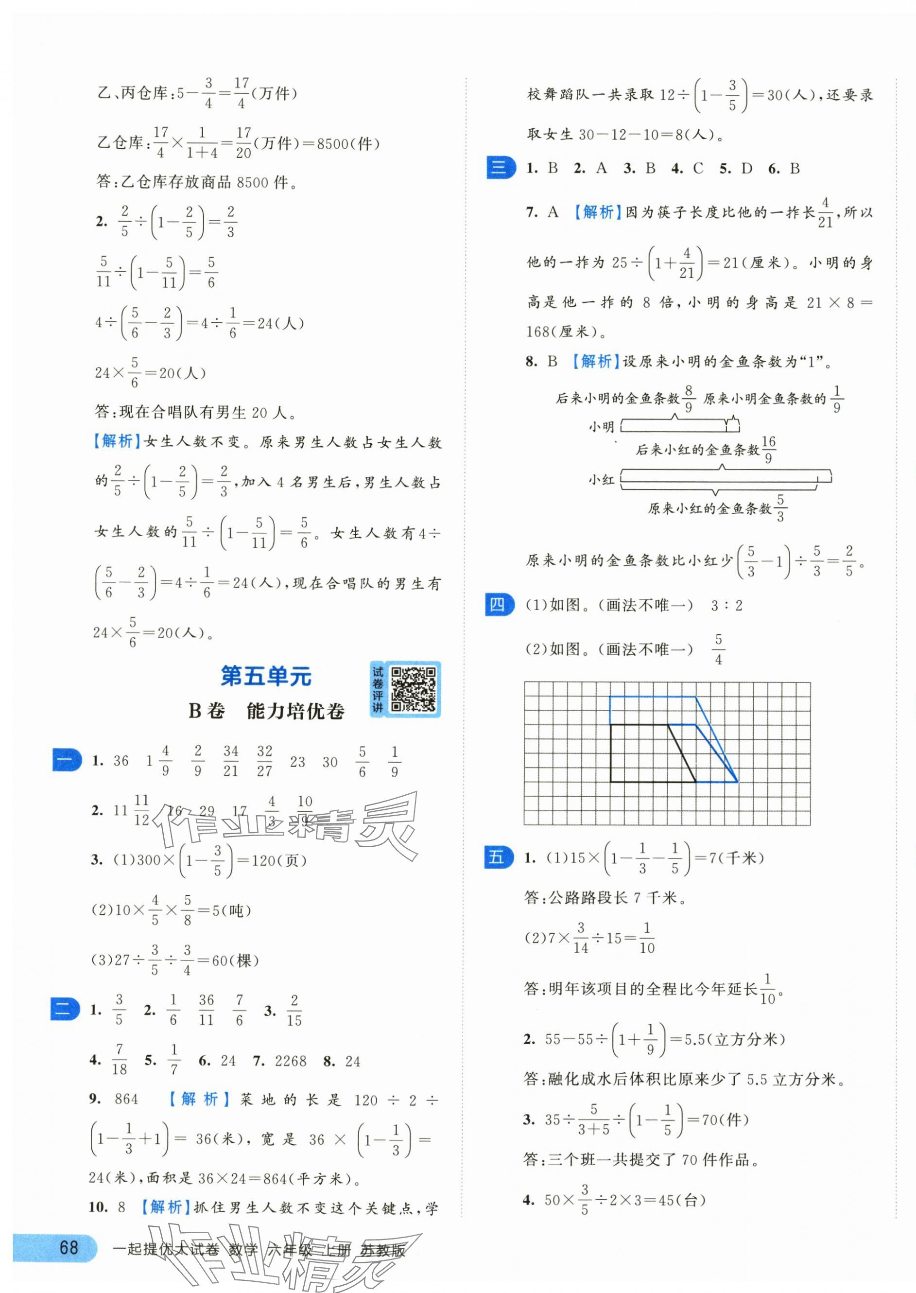 注:目前有些书本章节名称可能整理的还不是很完善,但都是按照顺序排列的,请同学们按照顺序仔细查找。练习册 2024年一起提优大试卷六年级数学上册苏教版江苏专版 答案主要是用来给同学们做完题方便对答案用的,请勿直接抄袭。
