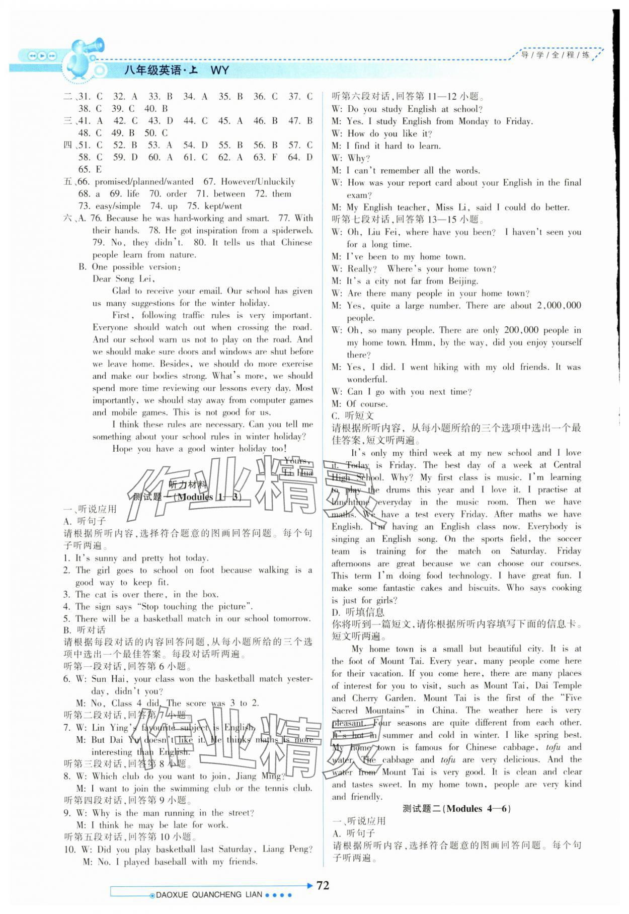 注:目前有些书本章节名称可能整理的还不是很完善,但都是按照顺序排列的,请同学们按照顺序仔细查找。练习册 2024年导学全程练创优训练八年级英语上册外研版 答案主要是用来给同学们做完题方便对答案用的,请勿直接抄袭。
