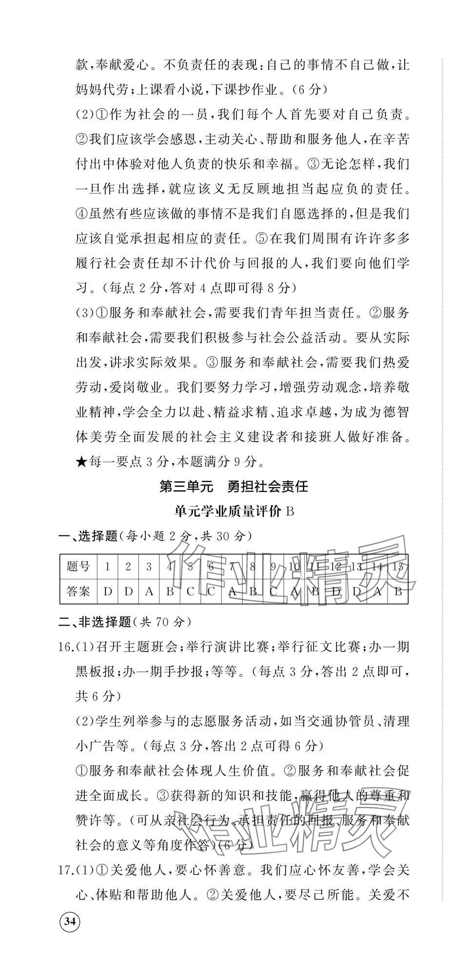 注:目前有些书本章节名称可能整理的还不是很完善,但都是按照顺序排列的,请同学们按照顺序仔细查找。练习册 2024年精练课堂分层作业八年级道德与法治上册人教版临沂专版 答案主要是用来给同学们做完题方便对答案用的,请勿直接抄袭。