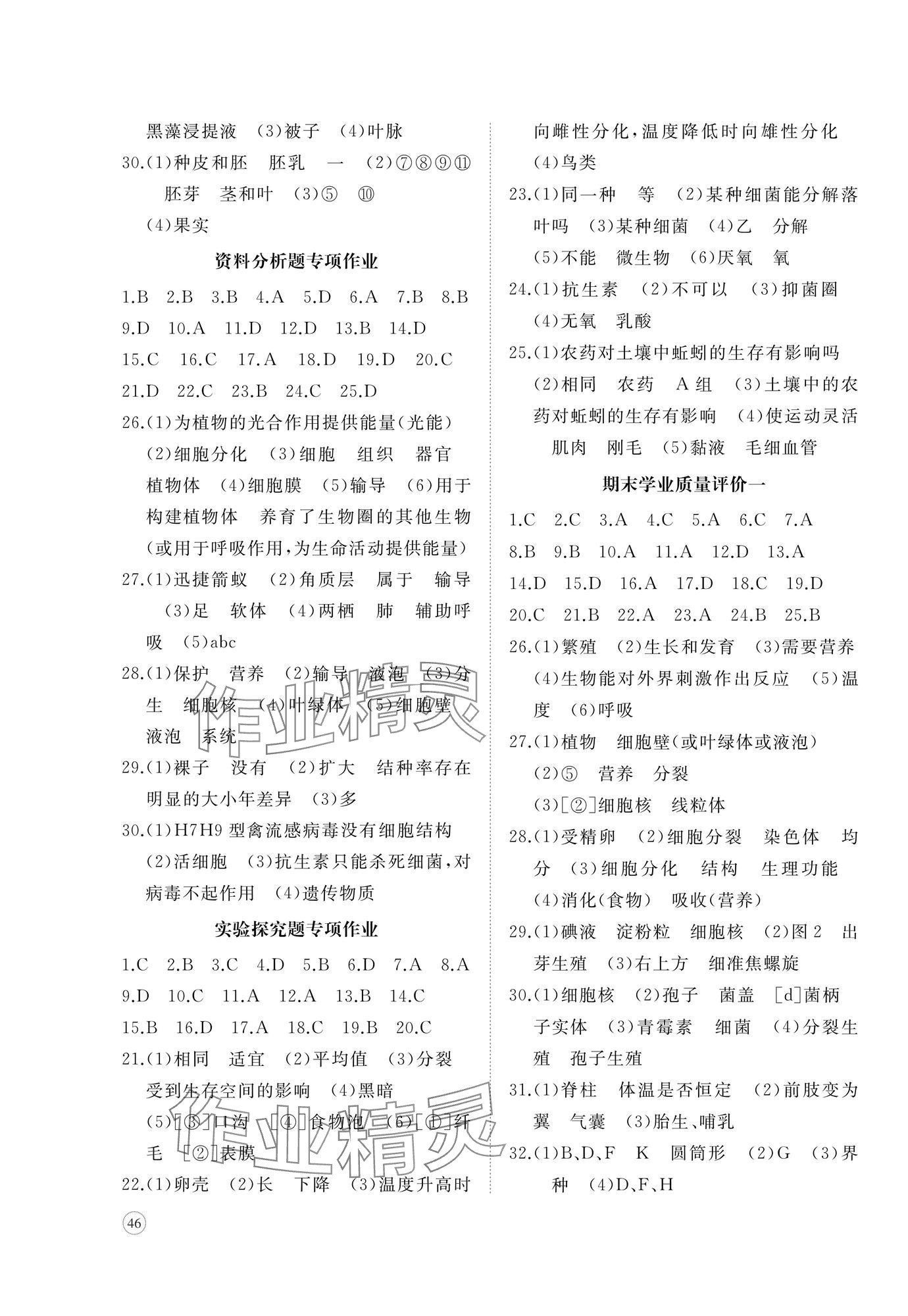注:目前有些书本章节名称可能整理的还不是很完善,但都是按照顺序排列的,请同学们按照顺序仔细查找。练习册 2024年精练课堂分层作业七年级生物上册人教版临沂专版 答案主要是用来给同学们做完题方便对答案用的,请勿直接抄袭。
