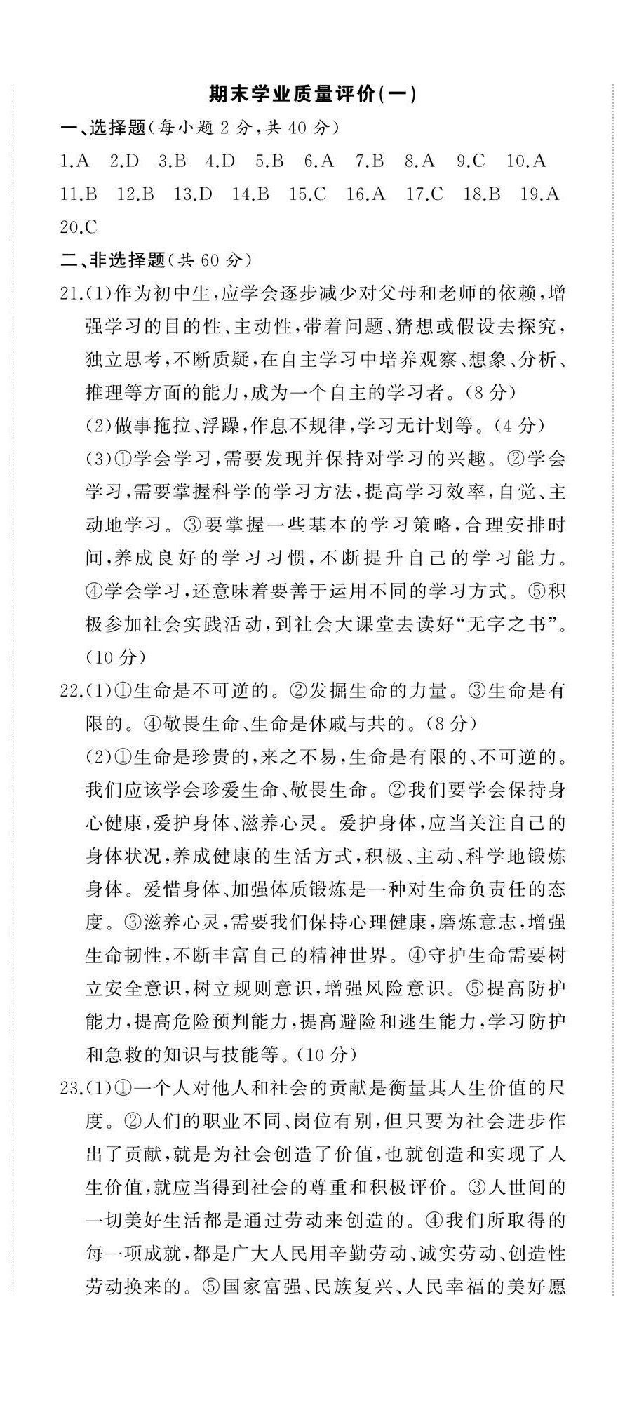 注:目前有些书本章节名称可能整理的还不是很完善,但都是按照顺序排列的,请同学们按照顺序仔细查找。练习册 2024年精练课堂分层作业七年级道德与法治上册人教版临沂专版 答案主要是用来给同学们做完题方便对答案用的,请勿直接抄袭。