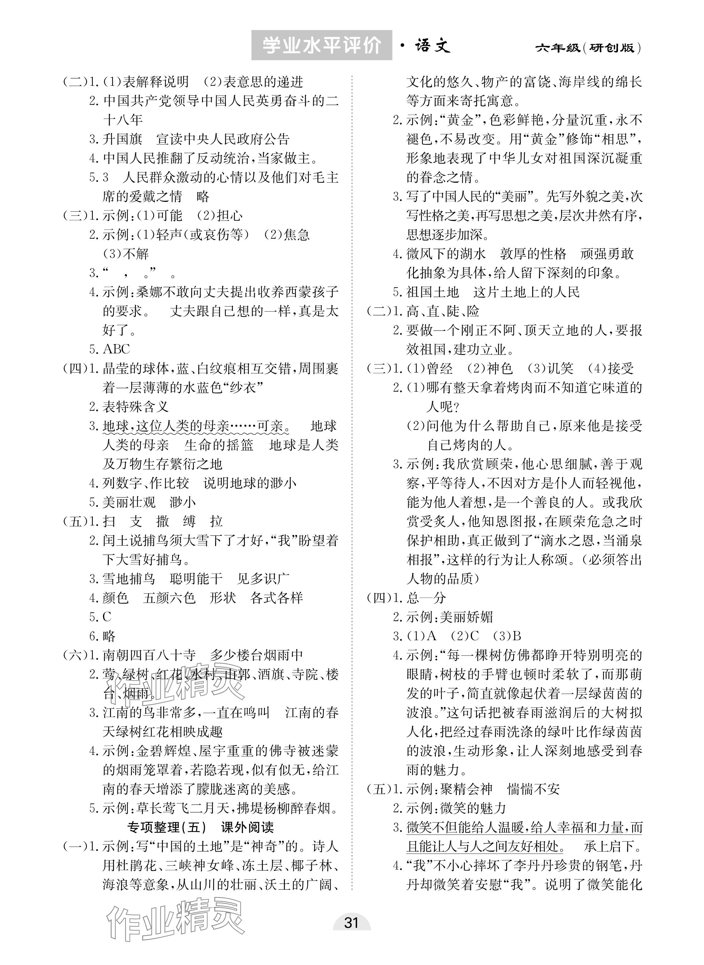 注:目前有些书本章节名称可能整理的还不是很完善,但都是按照顺序排列的,请同学们按照顺序仔细查找。练习册 2024年学业水平评价六年级语文上册人教版 答案主要是用来给同学们做完题方便对答案用的,请勿直接抄袭。