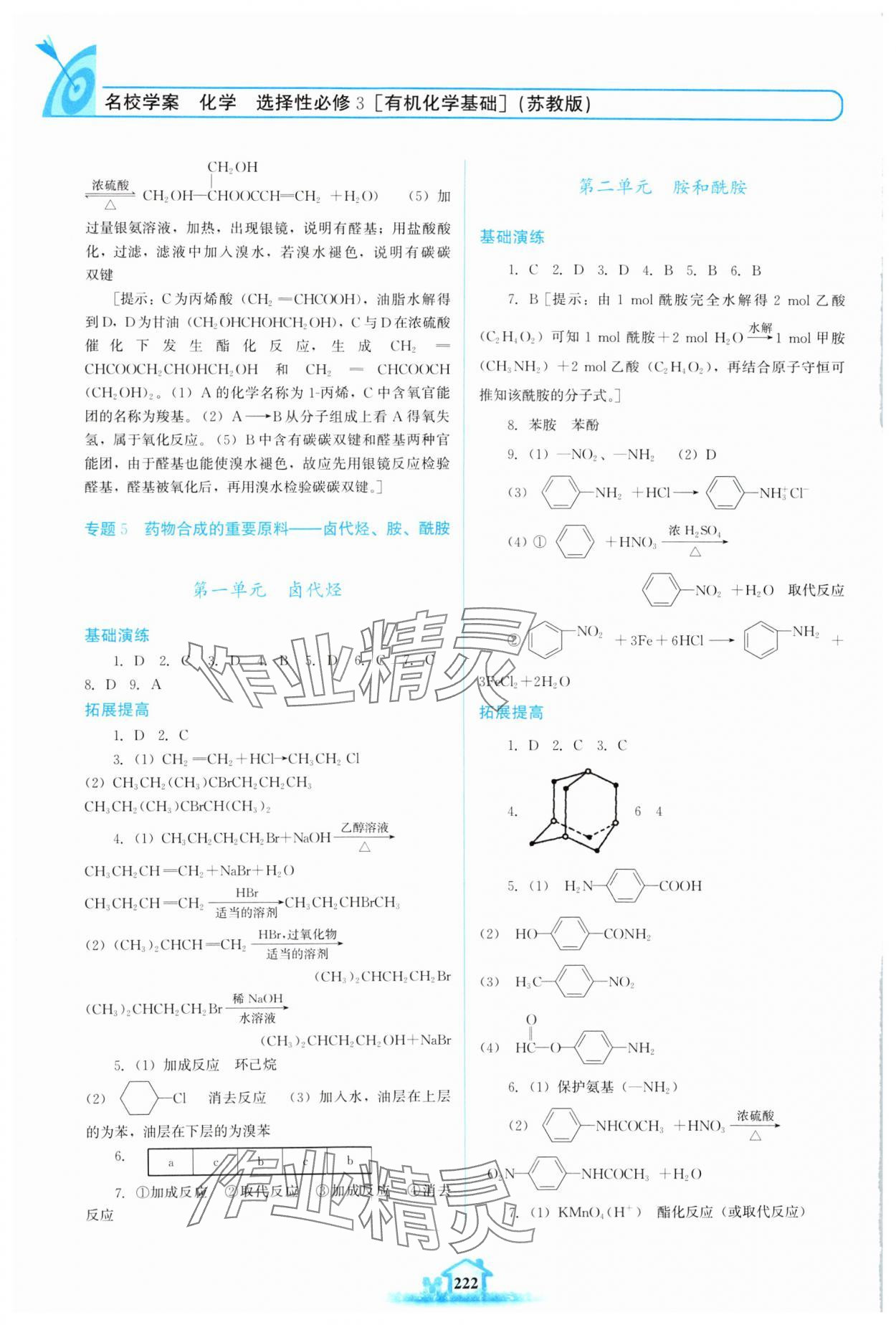注:目前有些书本章节名称可能整理的还不是很完善,但都是按照顺序排列的,请同学们按照顺序仔细查找。练习册 2024年名校学案高中化学选择性必修第三册苏教版 答案主要是用来给同学们做完题方便对答案用的,请勿直接抄袭。