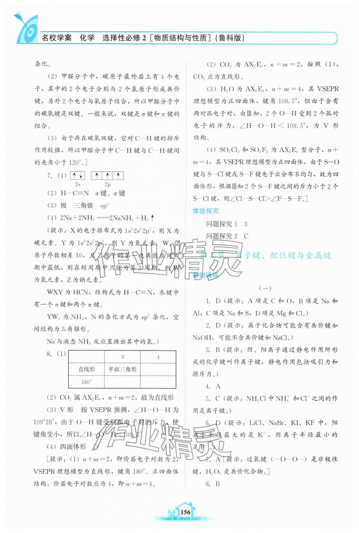 注:目前有些书本章节名称可能整理的还不是很完善,但都是按照顺序排列的,请同学们按照顺序仔细查找。练习册 2024年名校学案高中化学选择性必修2鲁科版 答案主要是用来给同学们做完题方便对答案用的,请勿直接抄袭。