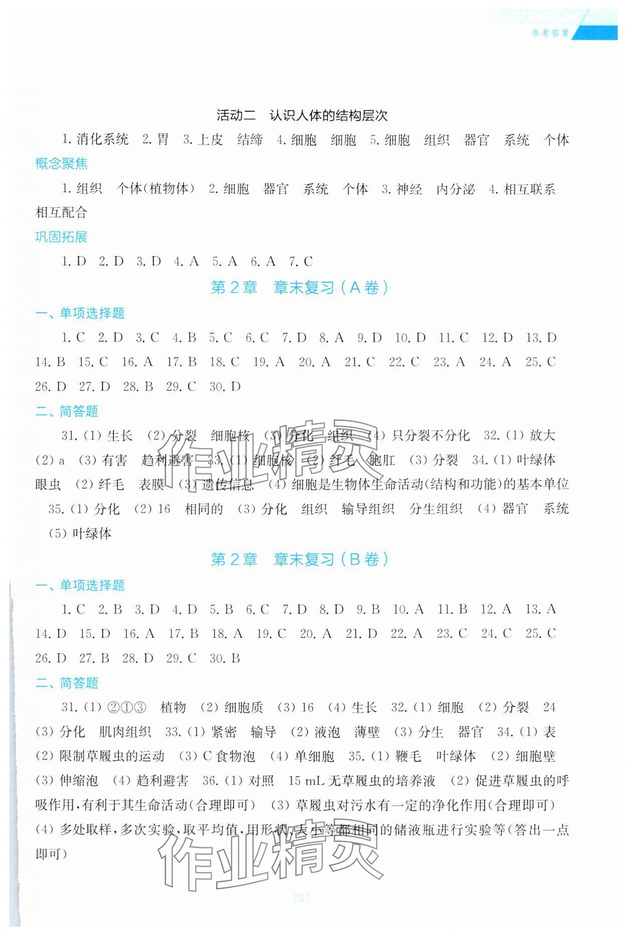 注:目前有些书本章节名称可能整理的还不是很完善,但都是按照顺序排列的,请同学们按照顺序仔细查找。练习册 2024年学习与评价江苏凤凰教育出版社七年级生物上册苏教版云南专版 答案主要是用来给同学们做完题方便对答案用的,请勿直接抄袭。