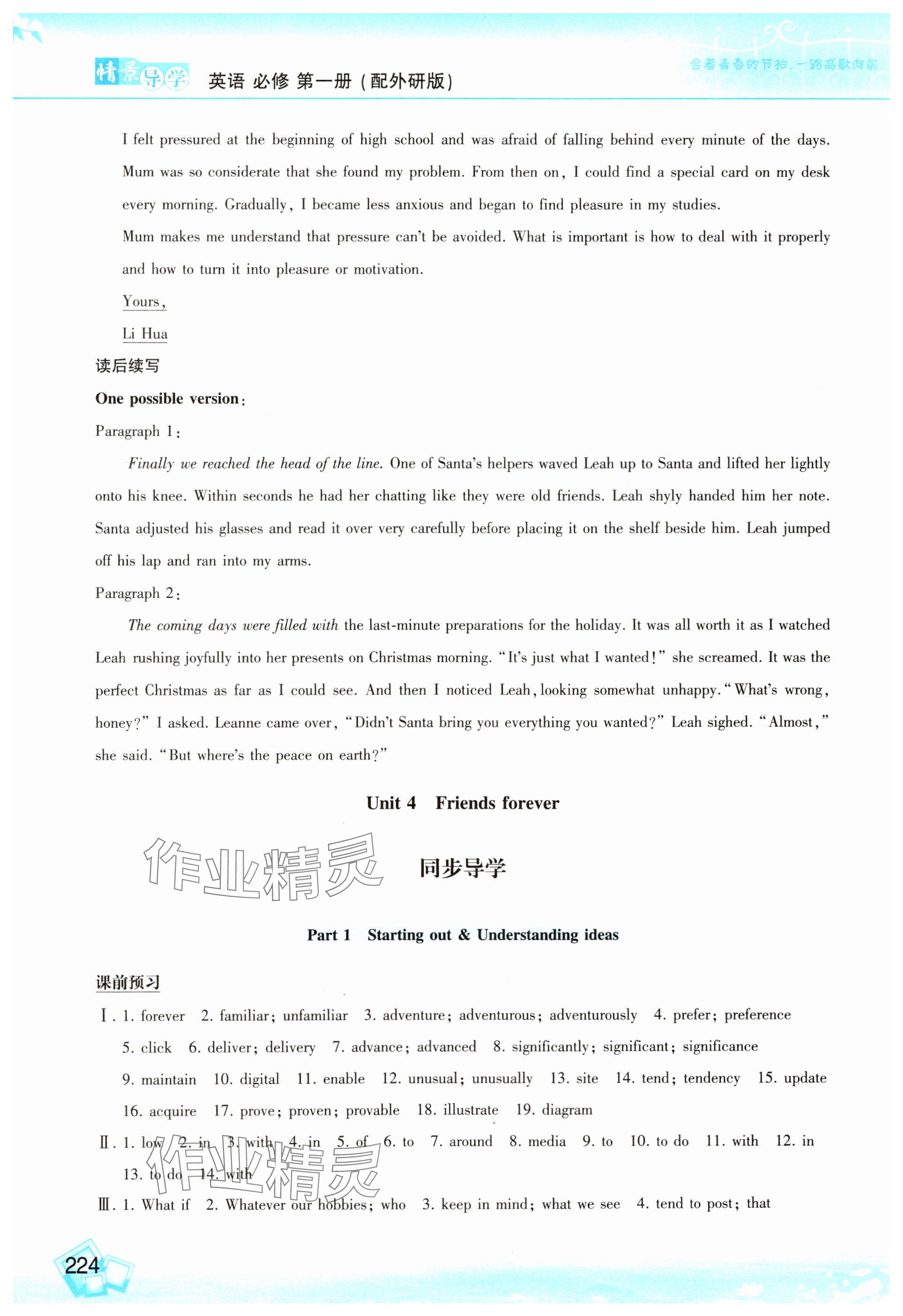 注:目前有些书本章节名称可能整理的还不是很完善,但都是按照顺序排列的,请同学们按照顺序仔细查找。练习册 2024年情景导学高中英语必修第一册外研版 答案主要是用来给同学们做完题方便对答案用的,请勿直接抄袭。
