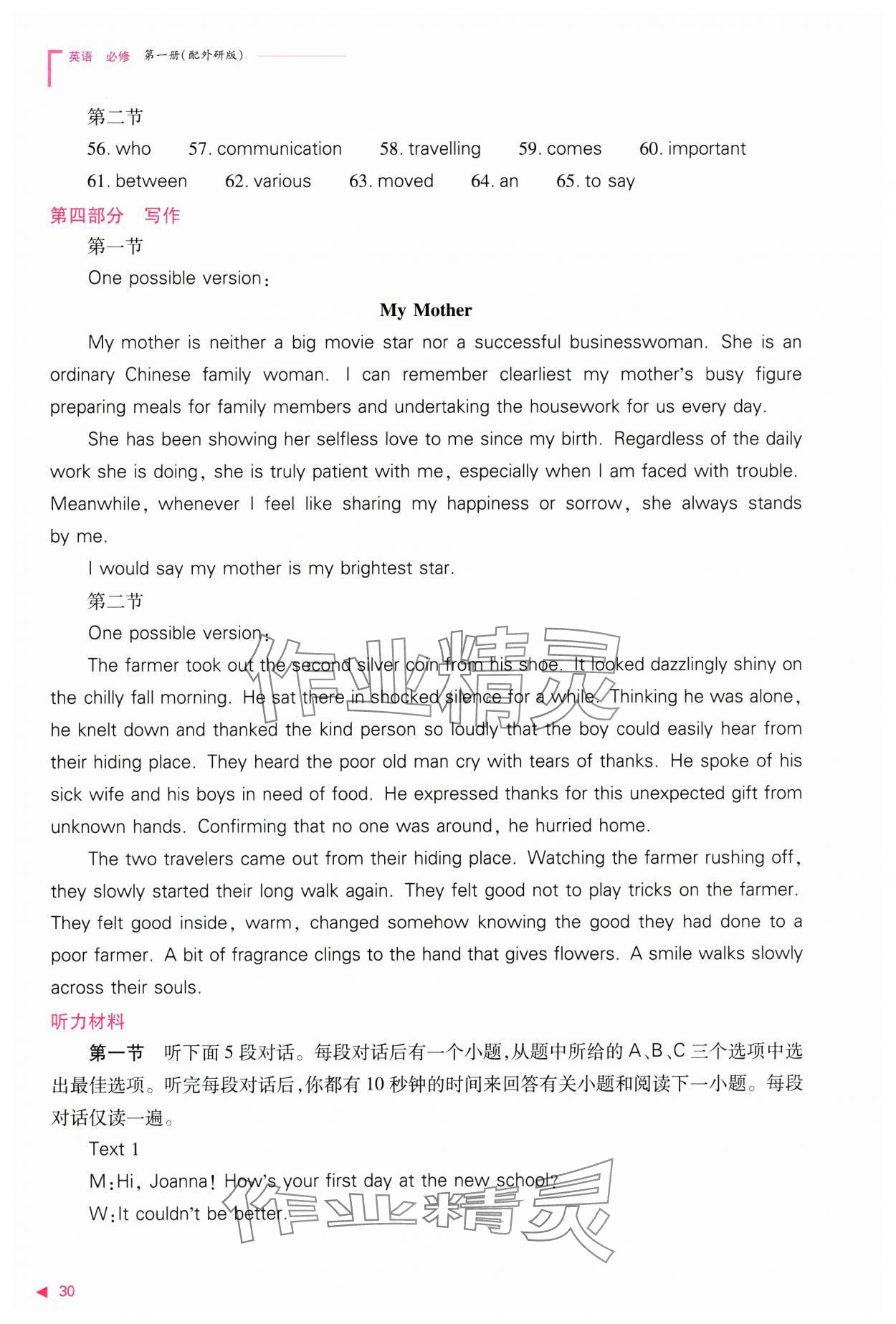 注:目前有些书本章节名称可能整理的还不是很完善,但都是按照顺序排列的,请同学们按照顺序仔细查找。练习册 2024年普通高中新课程同步练习册高中英语必修第一册外研版 答案主要是用来给同学们做完题方便对答案用的,请勿直接抄袭。