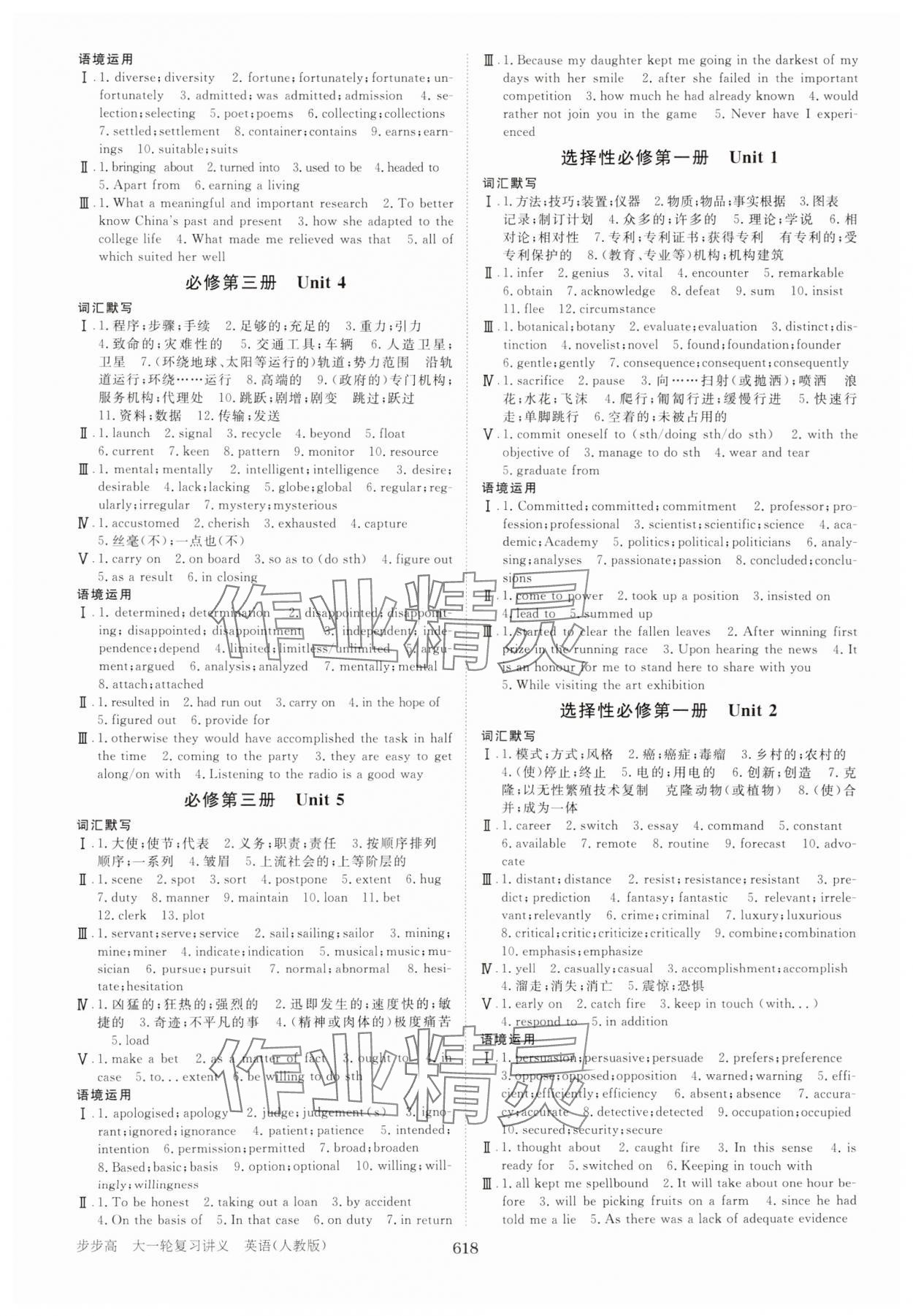 注:目前有些书本章节名称可能整理的还不是很完善,但都是按照顺序排列的,请同学们按照顺序仔细查找。练习册 2025年步步高大一轮复习讲义高中英语人教版 答案主要是用来给同学们做完题方便对答案用的,请勿直接抄袭。