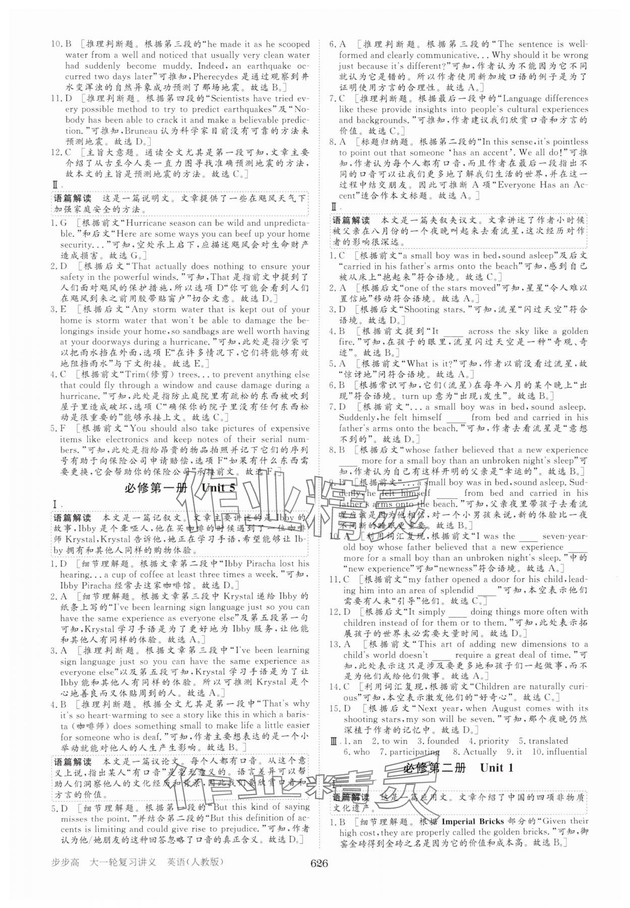 注:目前有些书本章节名称可能整理的还不是很完善,但都是按照顺序排列的,请同学们按照顺序仔细查找。练习册 2025年步步高大一轮复习讲义高中英语人教版 答案主要是用来给同学们做完题方便对答案用的,请勿直接抄袭。